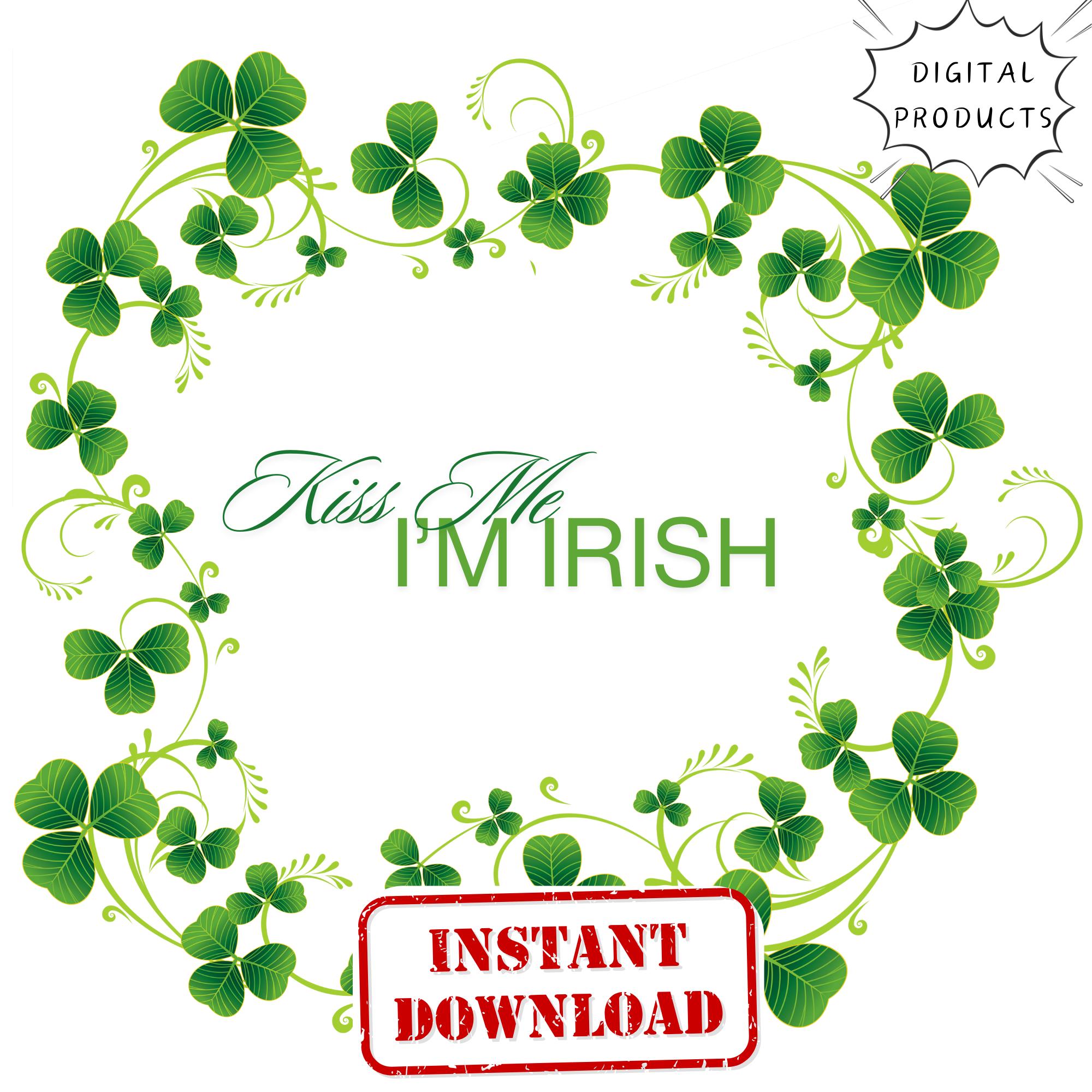 St. Patrick’s Day png, Shamrock png, Clover png, Popular Png, Kiss Me I'm Irish PNG, St. Pattys Digital Download, High-Resolution PNG Design