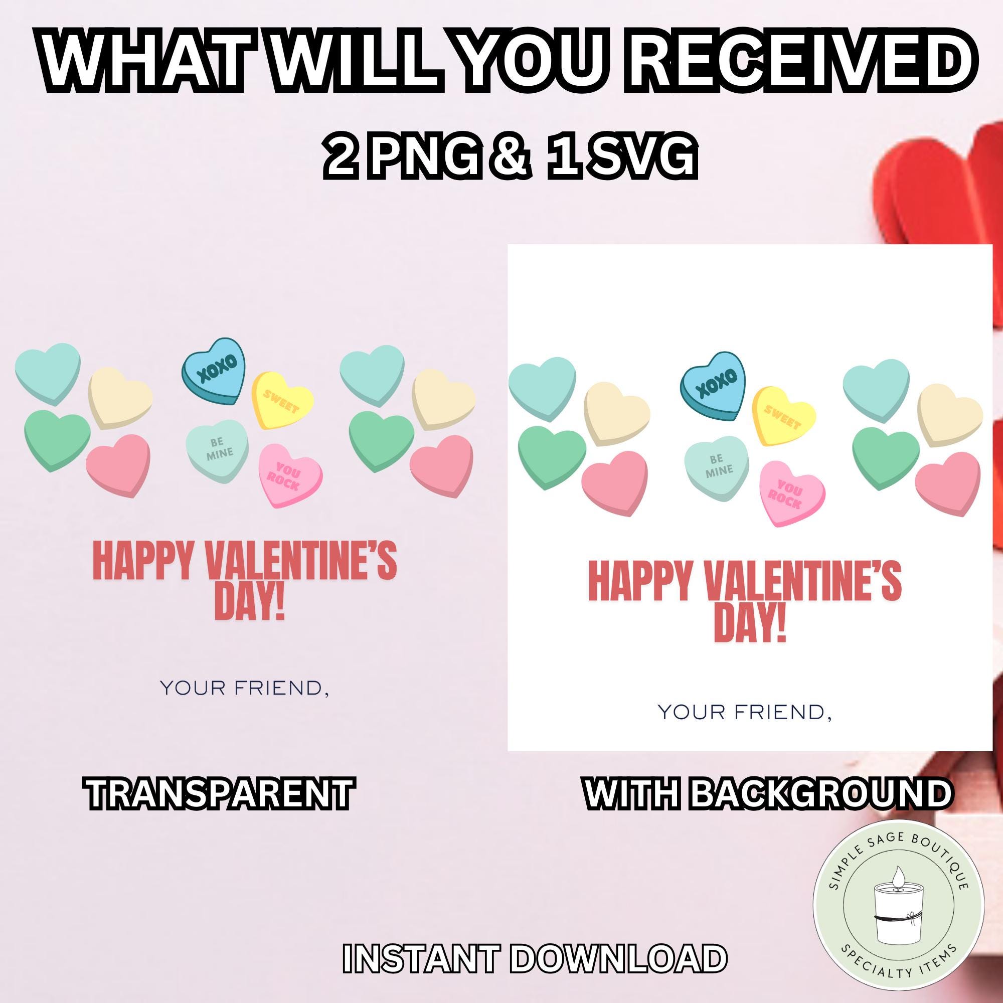 Candy Hearts Valentine Cards Printable: Kids Valentine SVG, PNG (Digital Download)