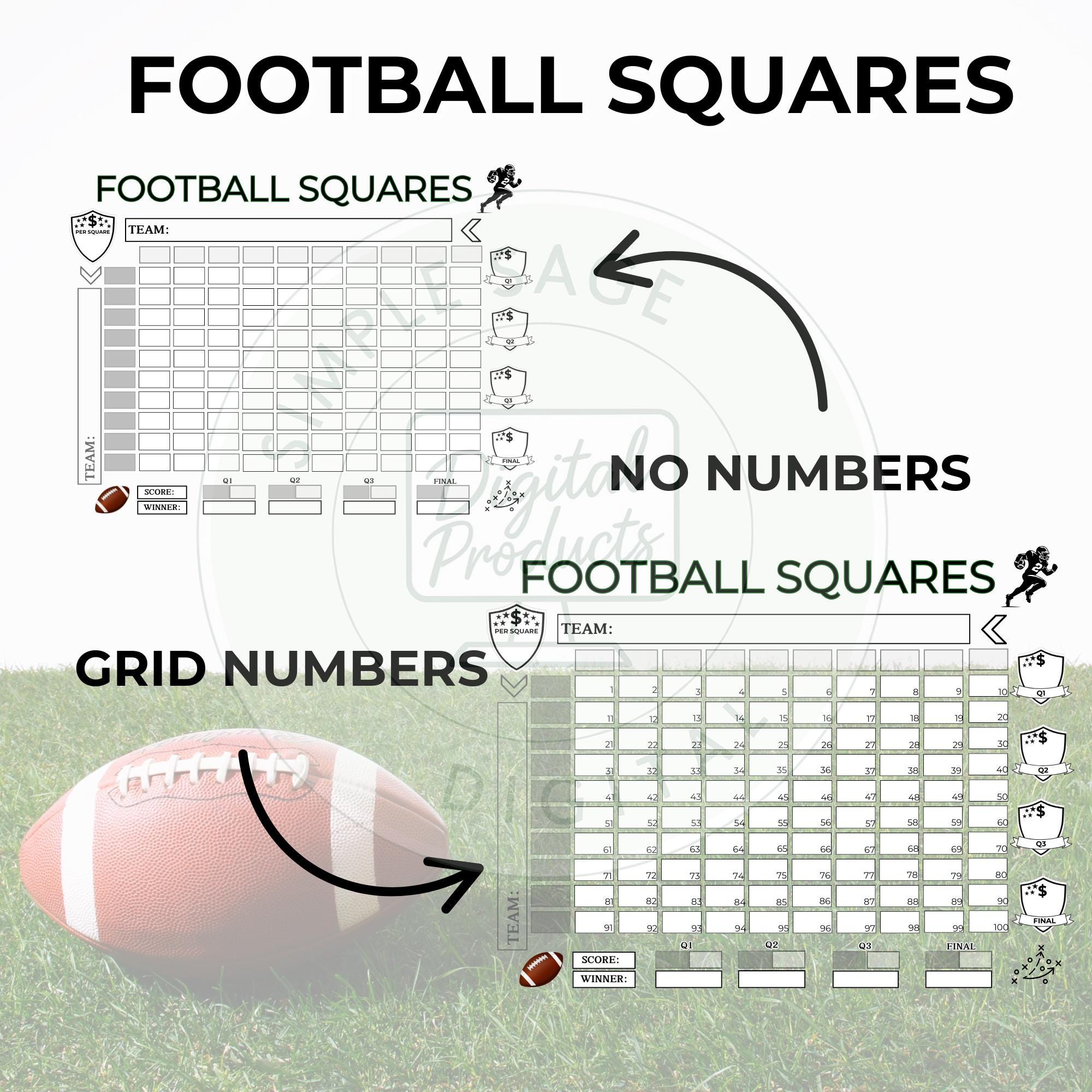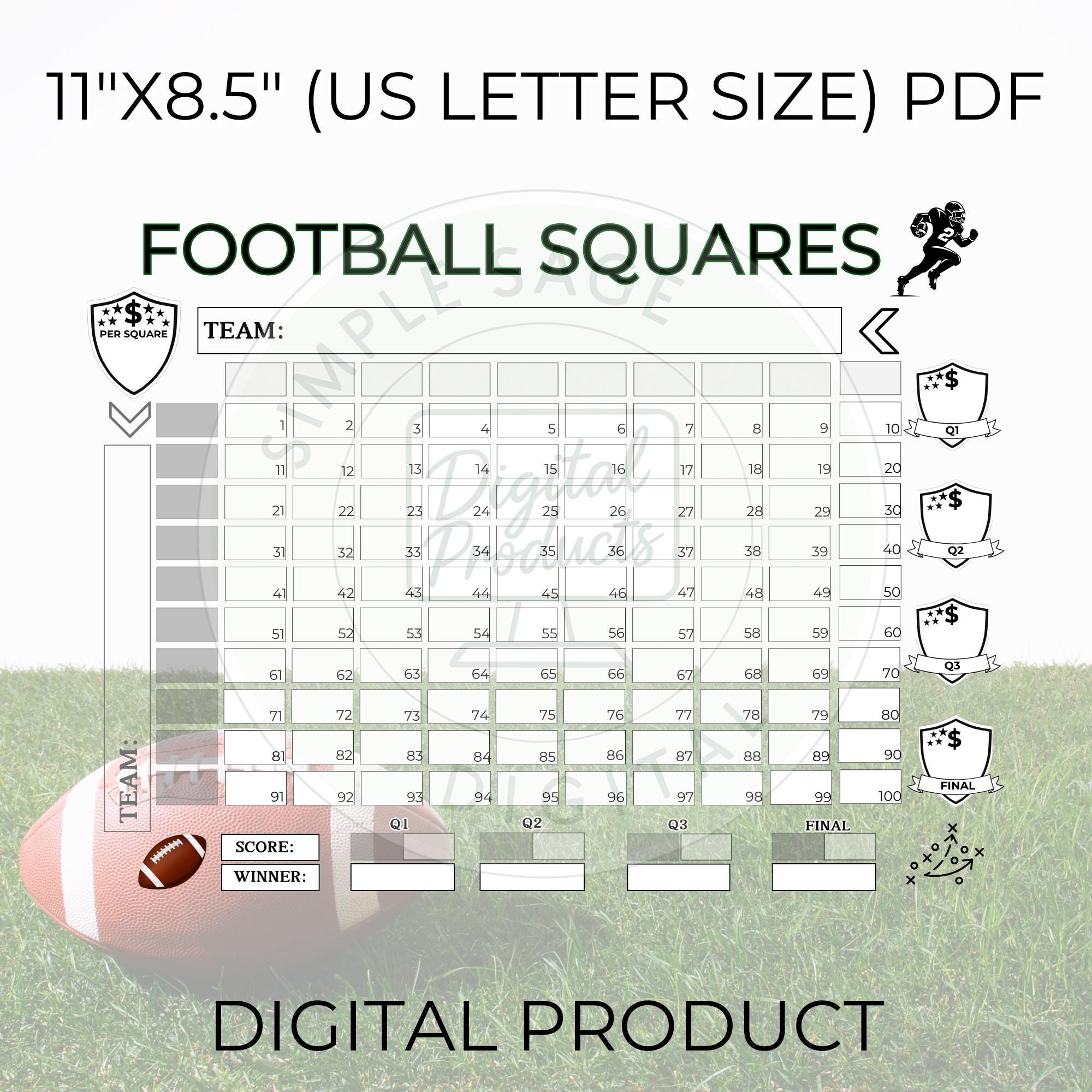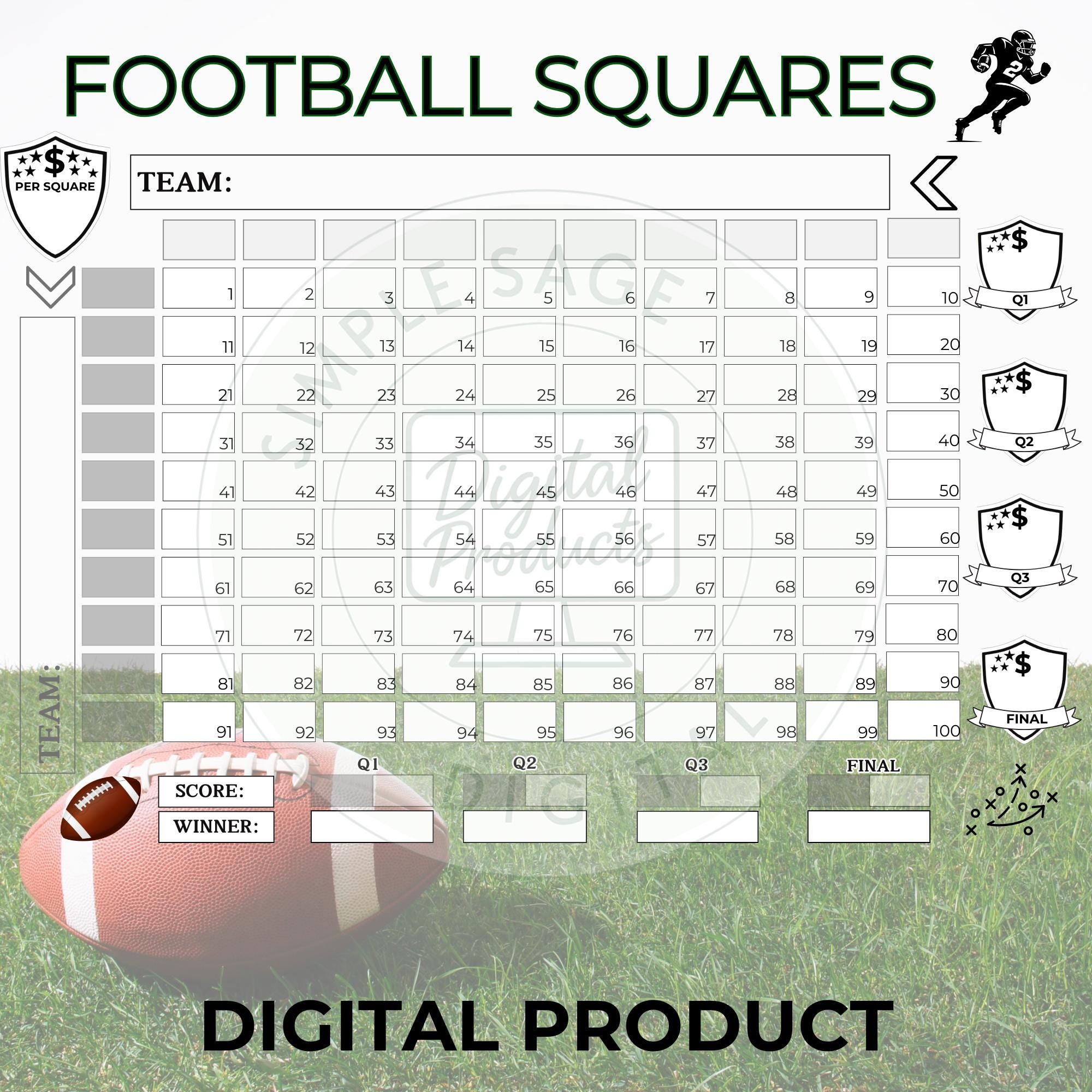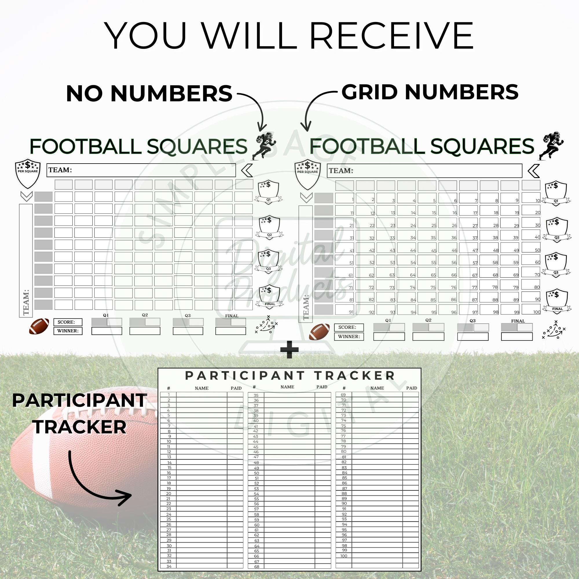 🏈 Football Squares Printable – 100 Square Grid + Participant Tracker for Fundraiser, Betting Pool, and Game Day Fun – Instant Download