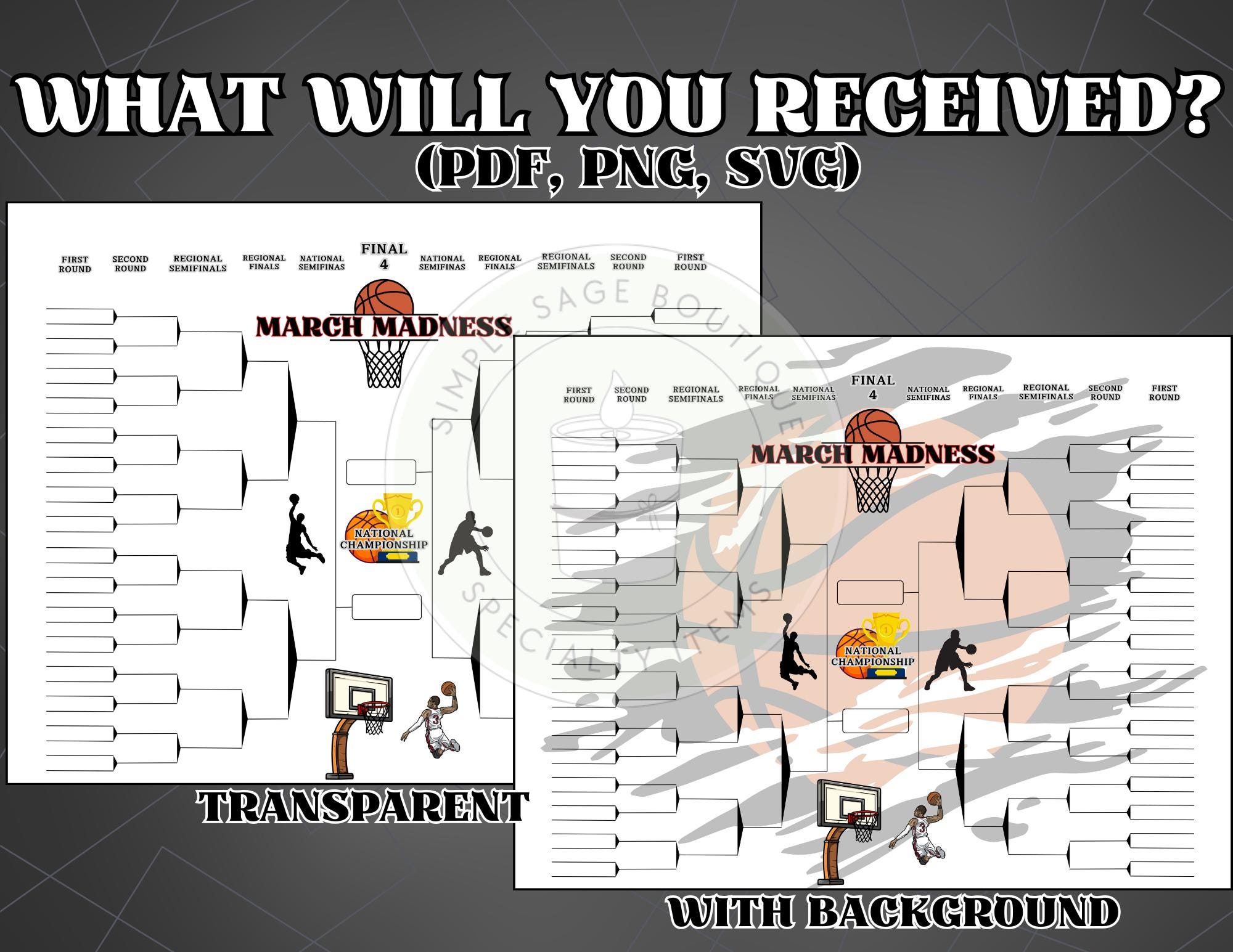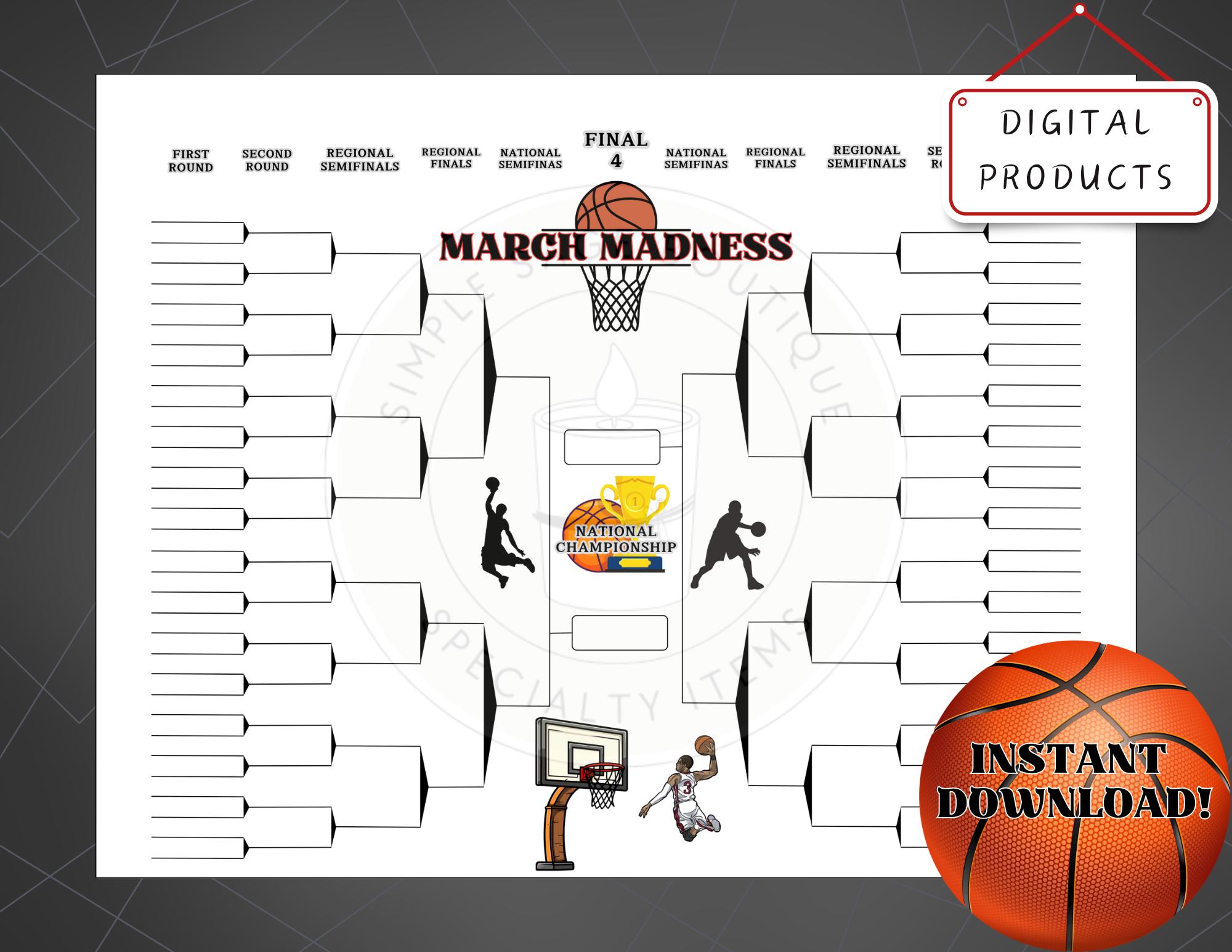 🏀 Printable March Madness Bracket | Digital Download – PDF, PNG, SVG