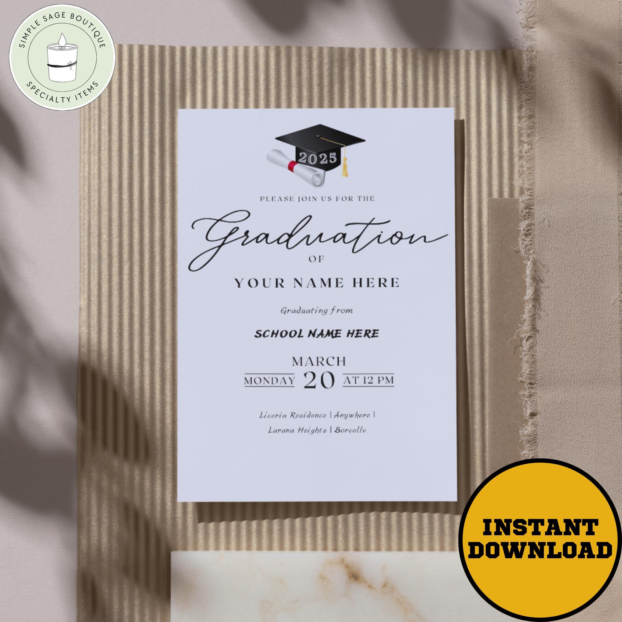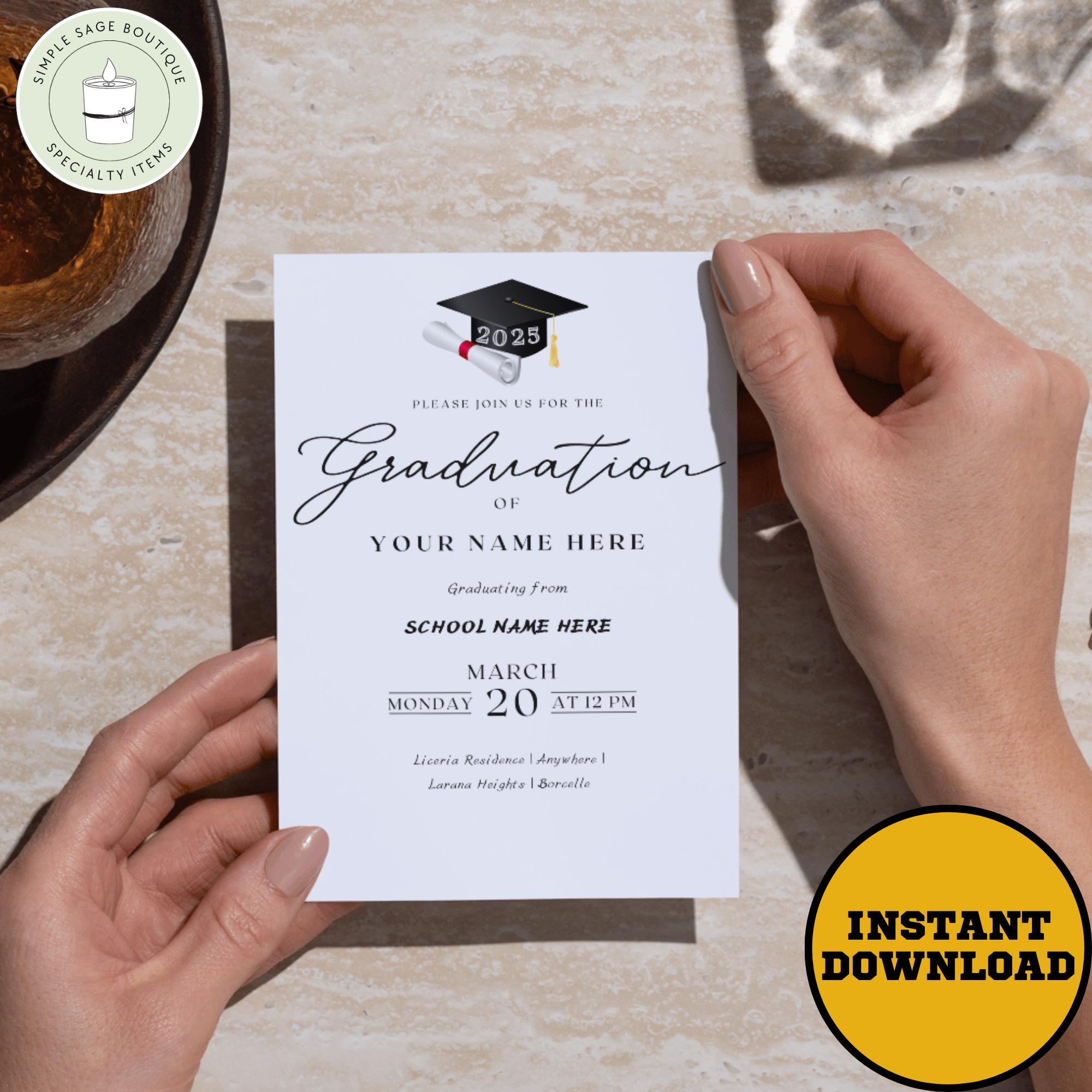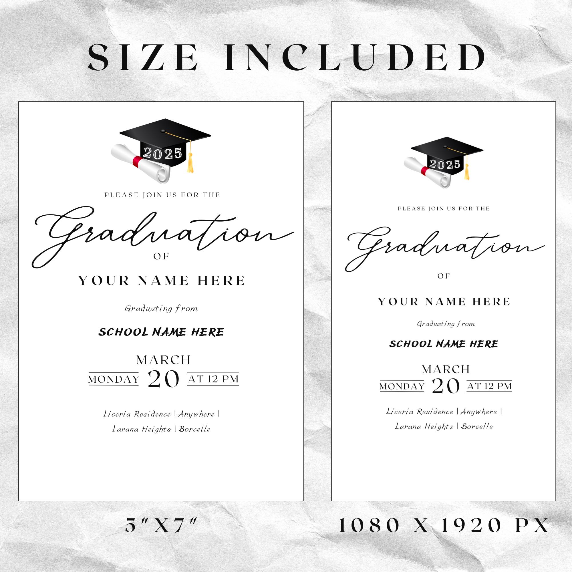 Editable Graduation Invitation 2025: High School or College Party (Digital Download, 5x7 & Mobile Sizes)
