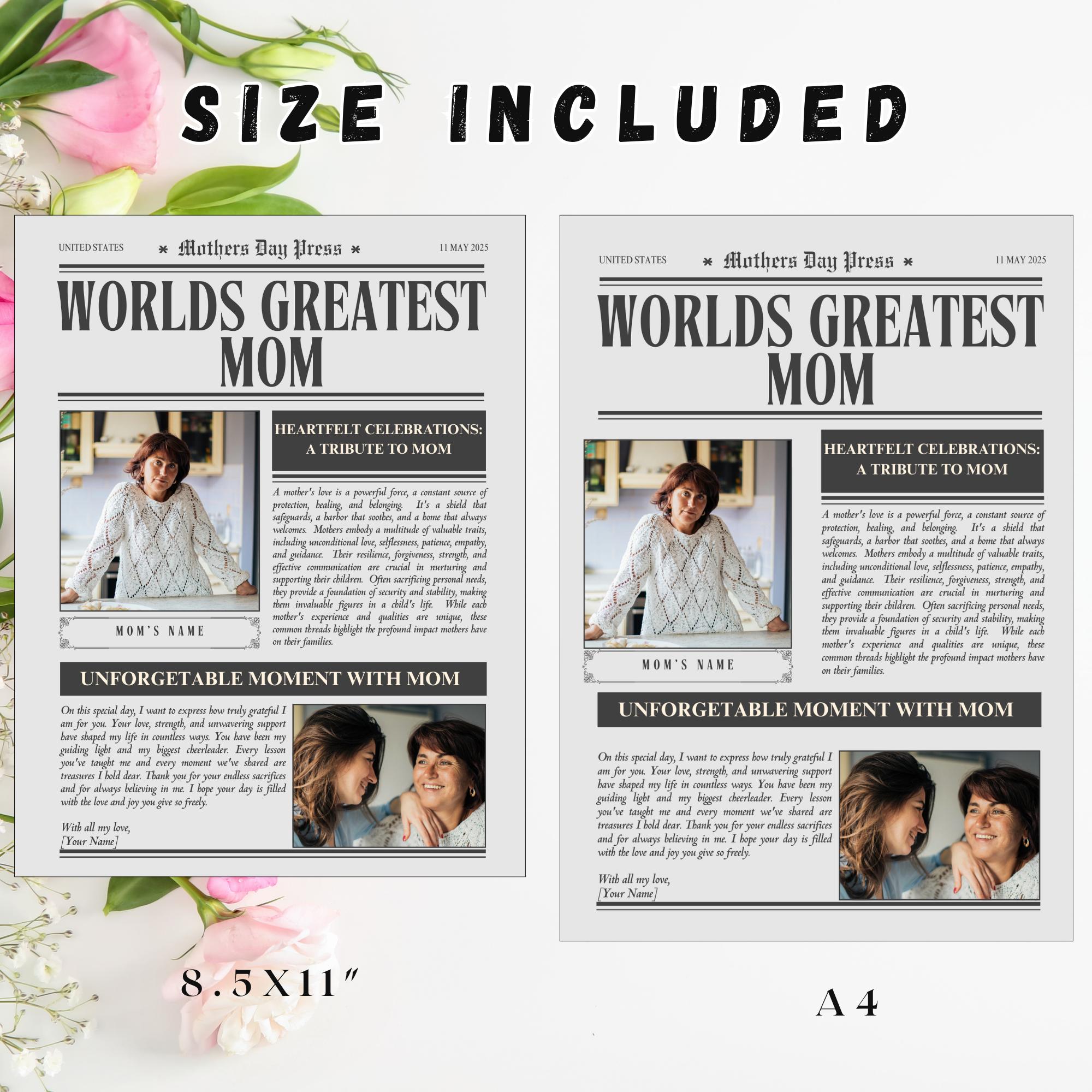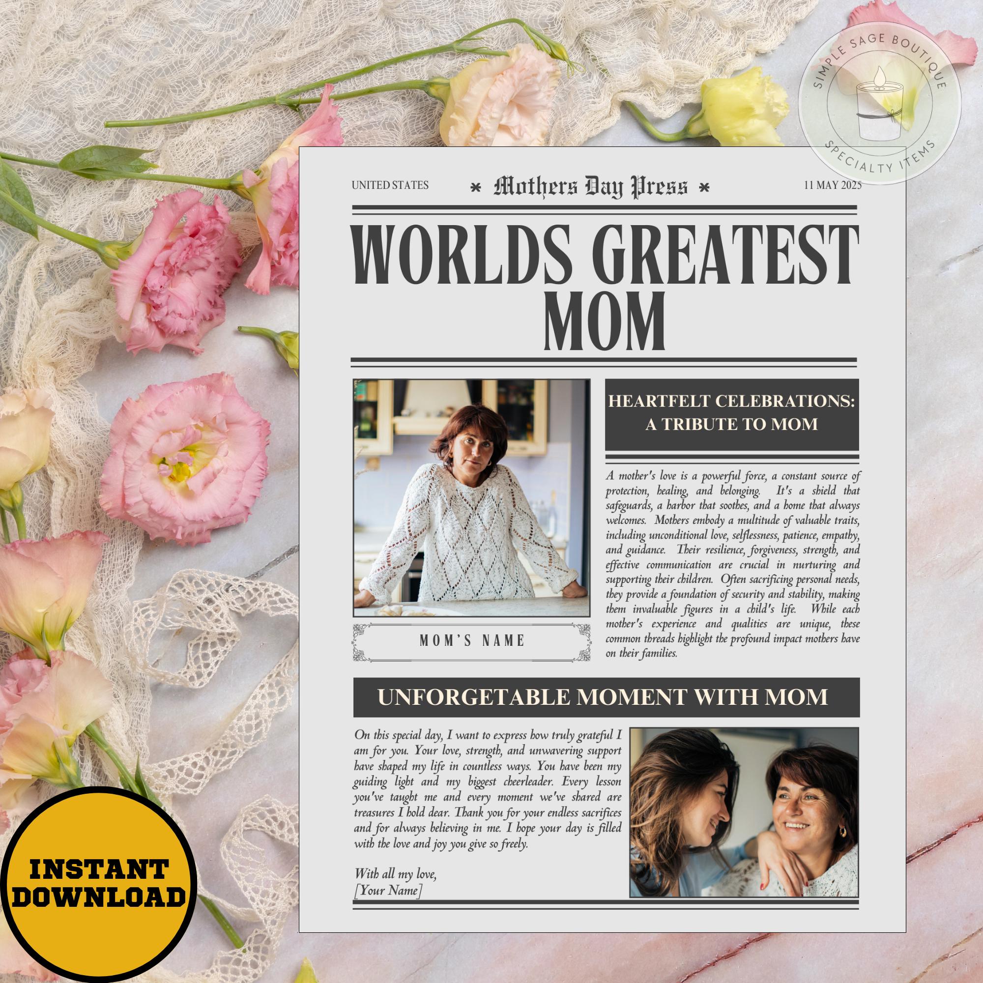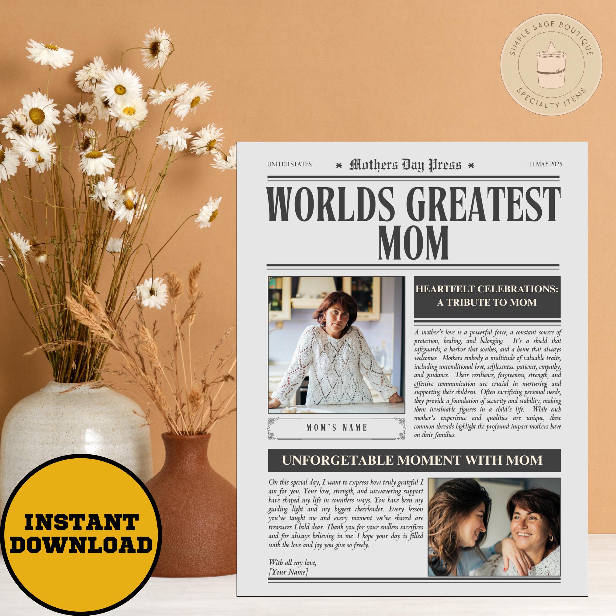 Personalized Mother's Day Newspaper Template, Custom Printable Gift (Digital Download)