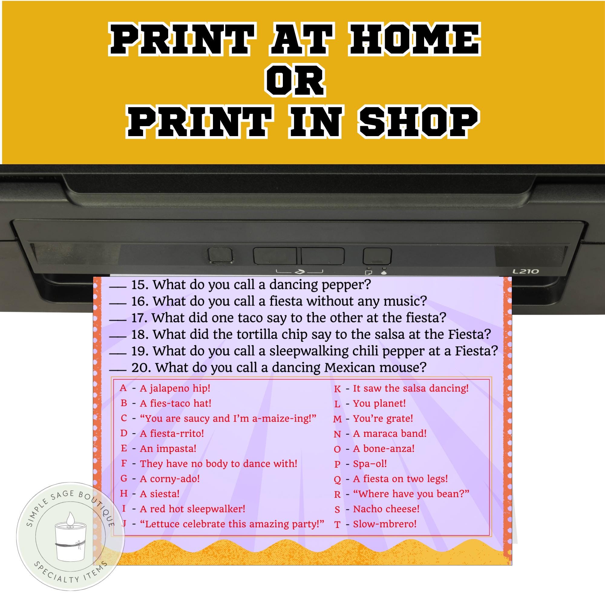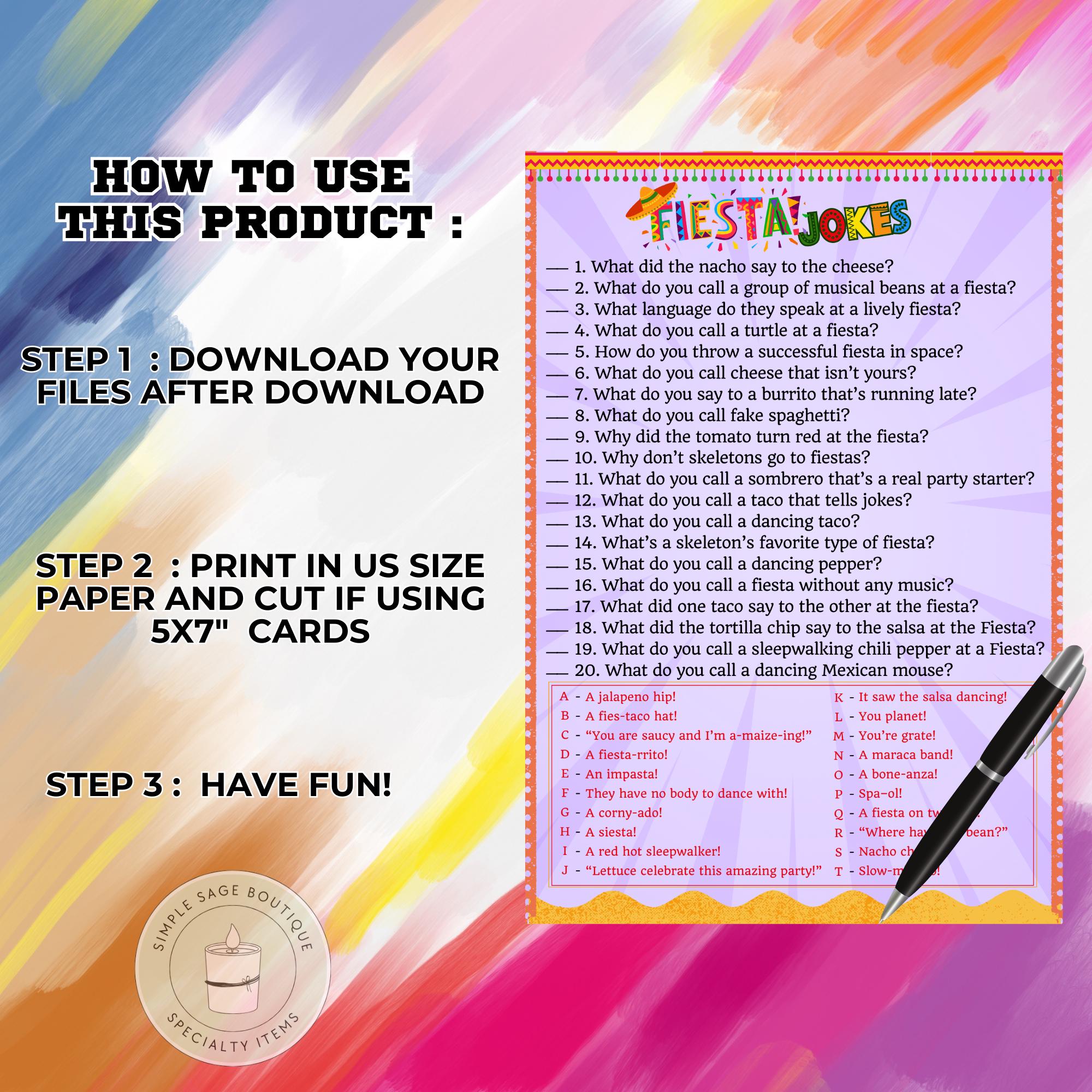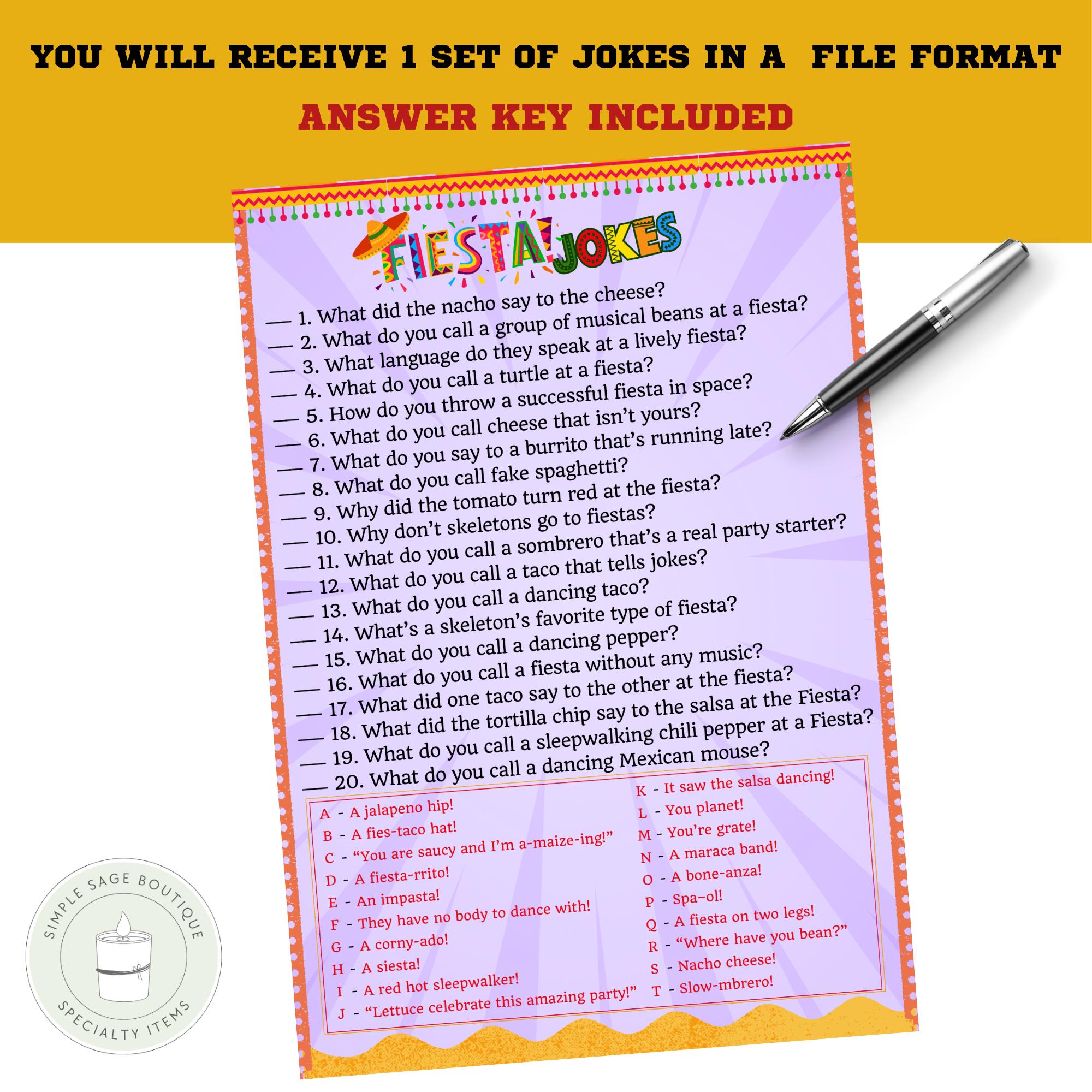 Fiesta Jokes Game, Printable Mexican Party Trivia (PDF Pattern)