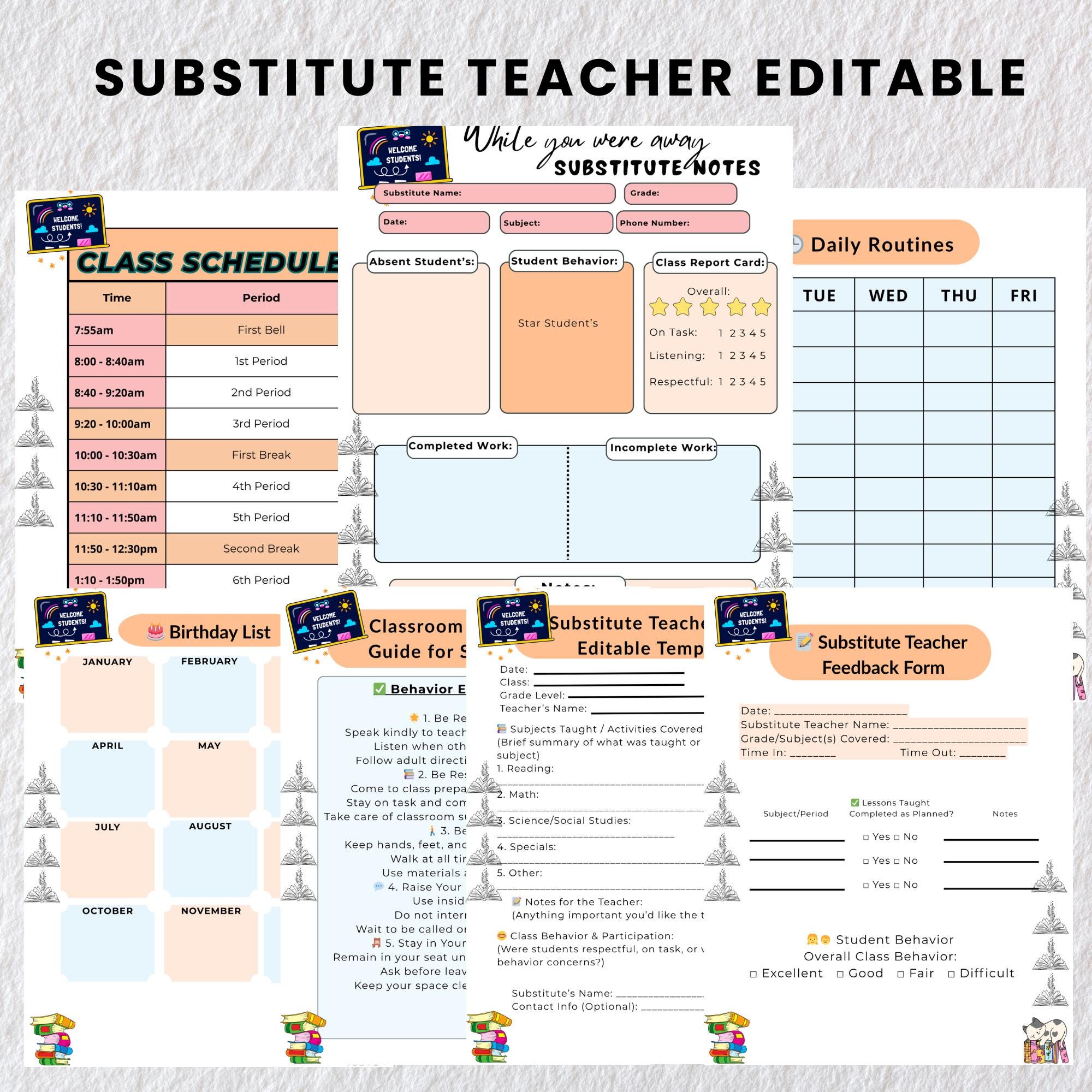Editable Substitute Teacher Note Template: Printable Classroom Planner (PDF Download)
