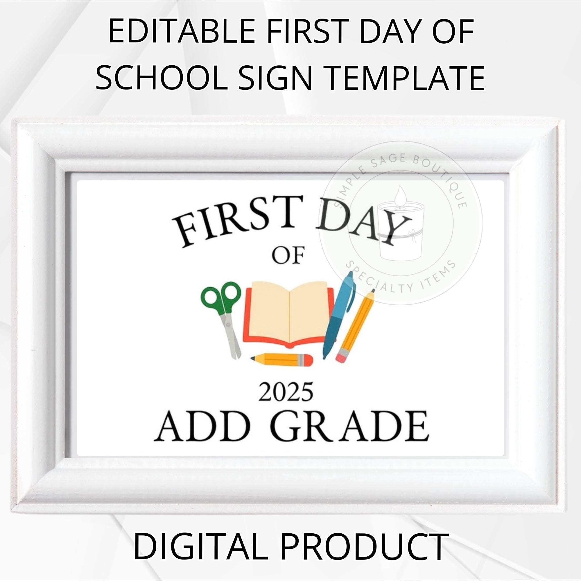 Editable First Day of School Sign: Canva Template, Printable PDF (8.5x11" Digital Download)