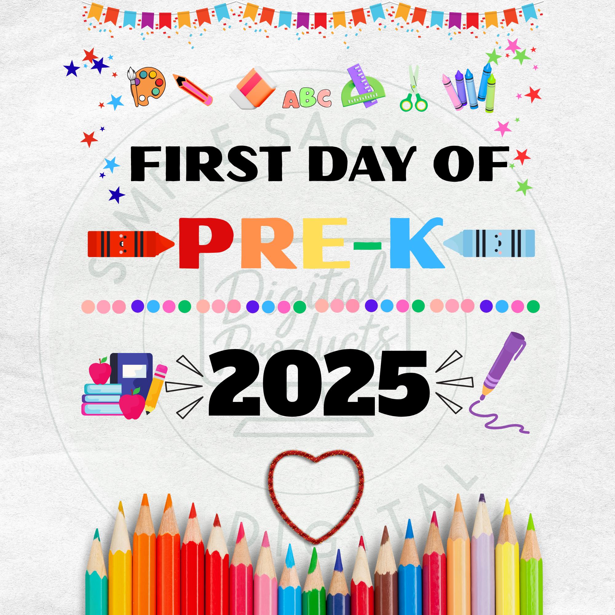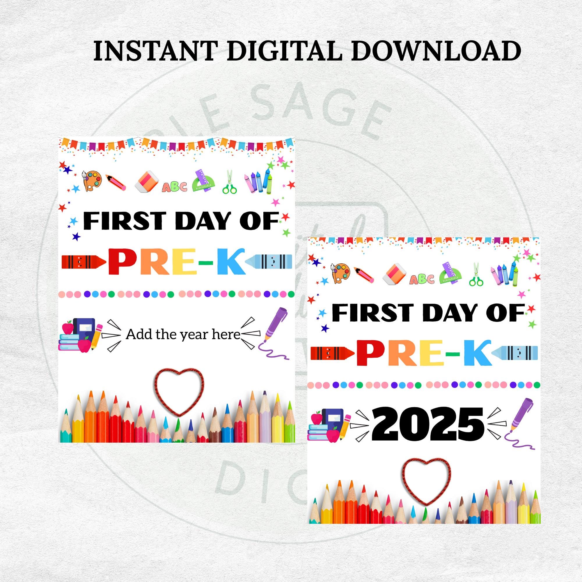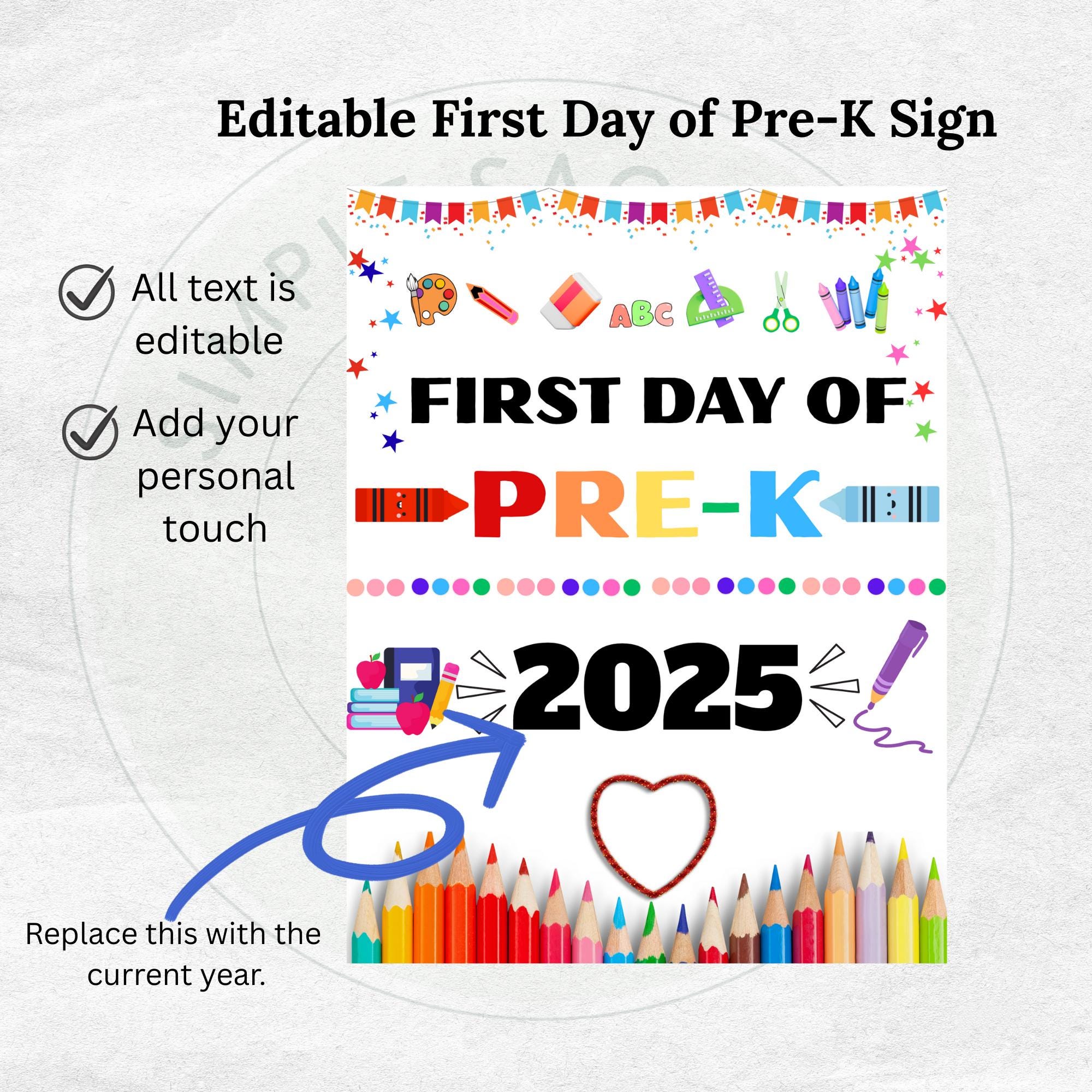 Editable Pre-K First Day Sign: Back to School Photo Prop (Instant Download 2025-2026)