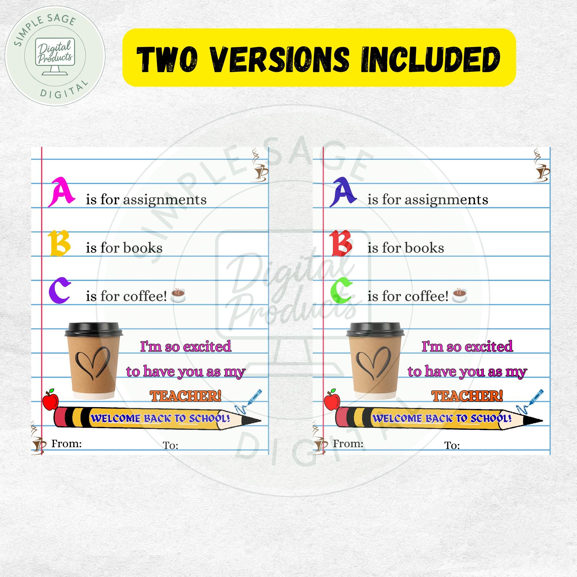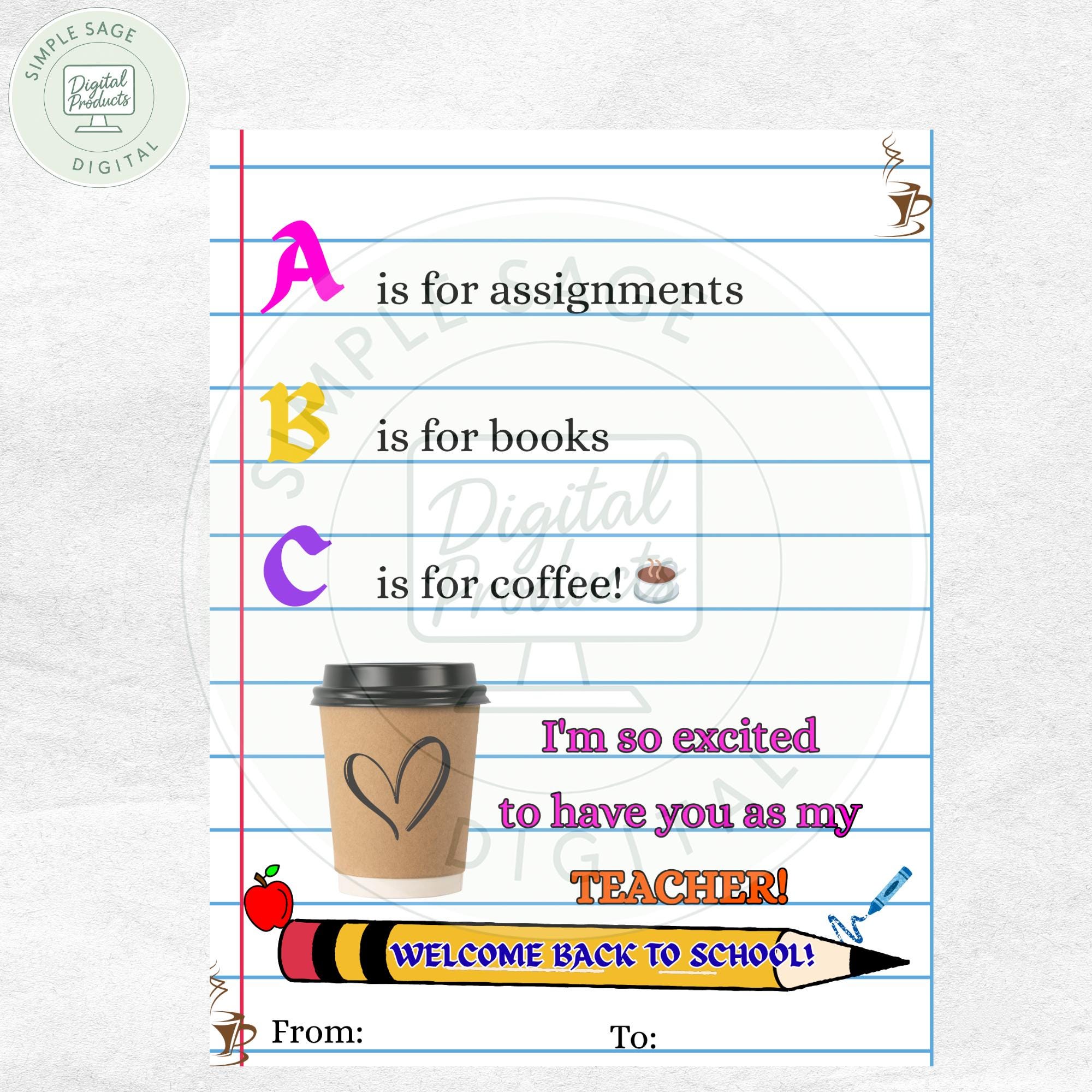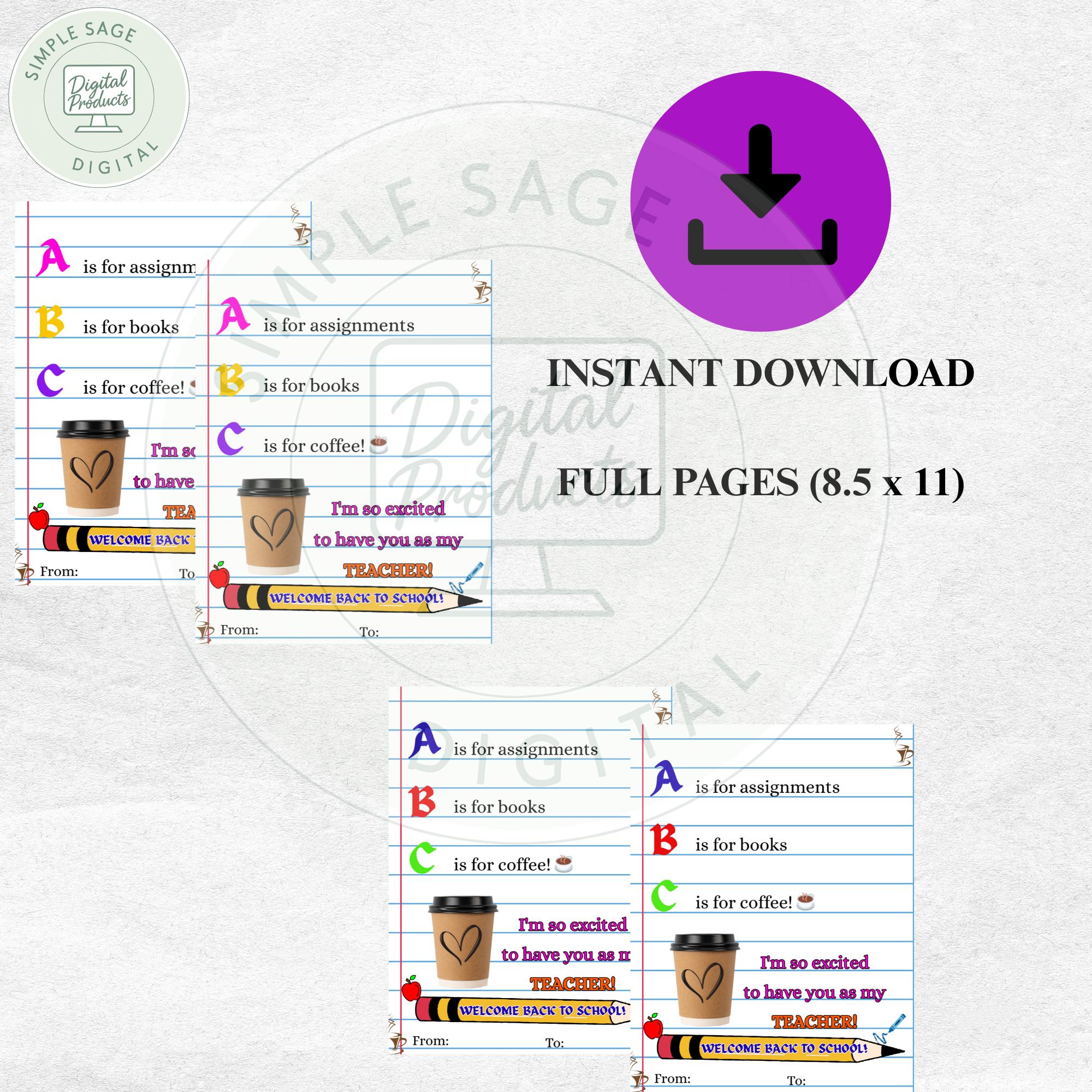 Printable Coffee Gift Card Holder • Back to School Teacher Gift (Digital Download)