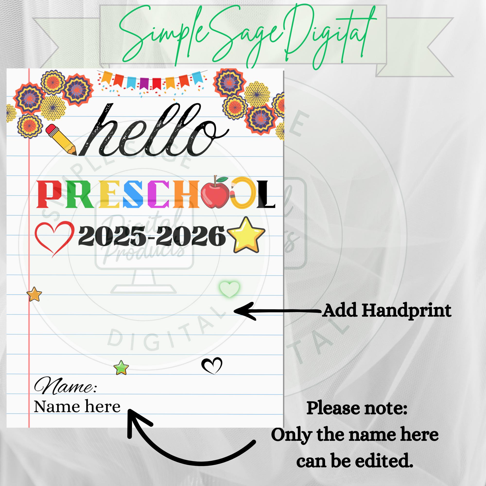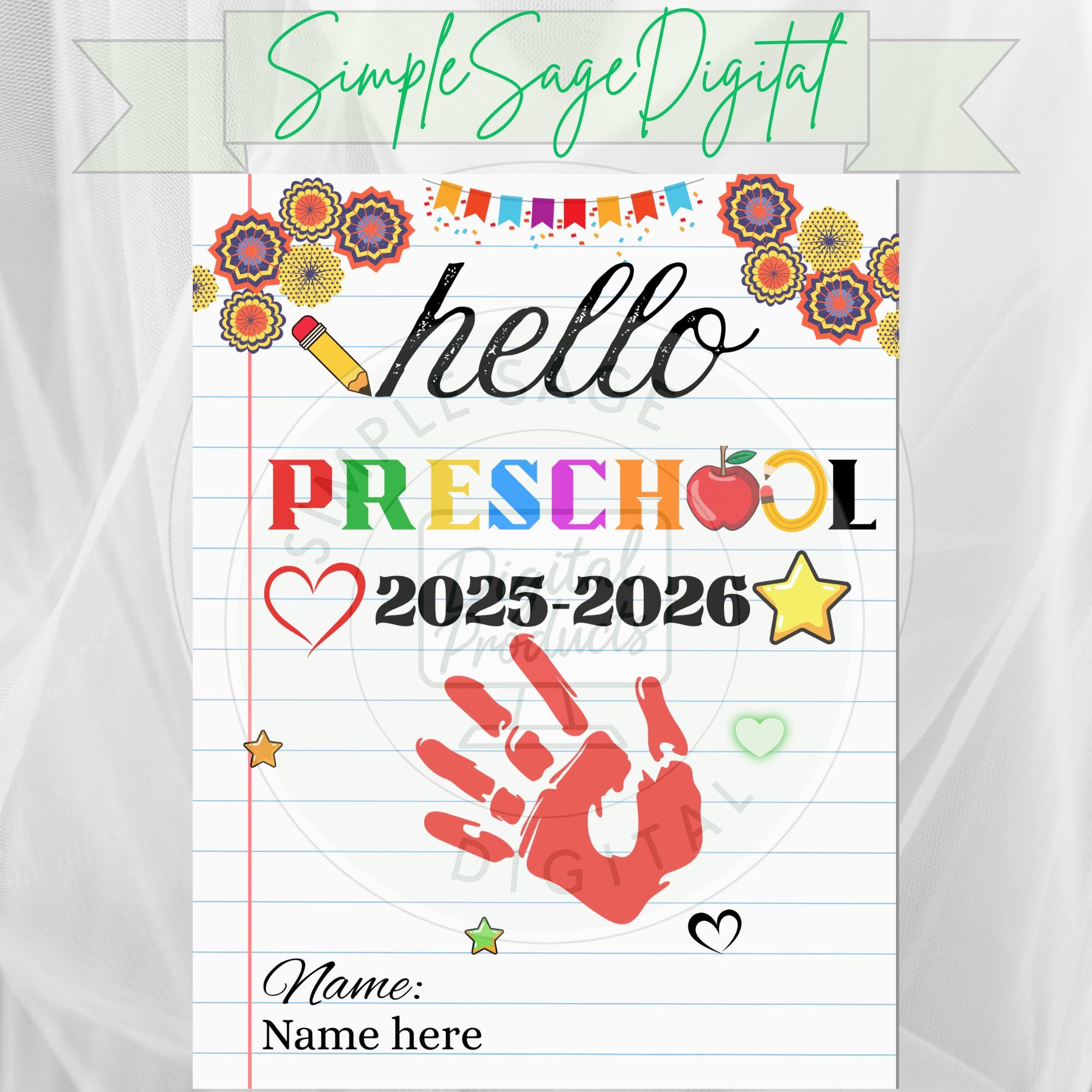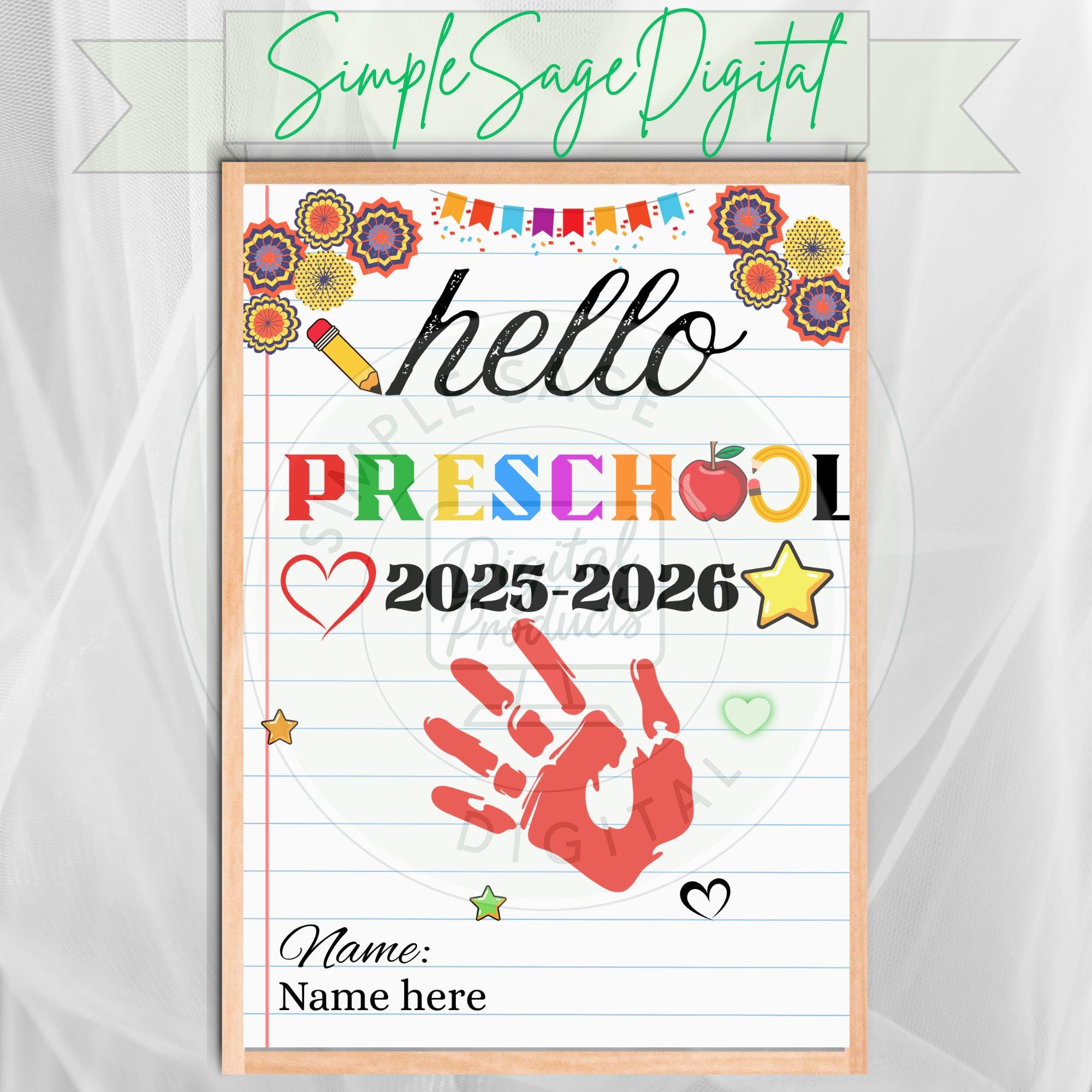 First Day of Preschool Handprint Art 2025: Back to School Keepsake (Printable Template