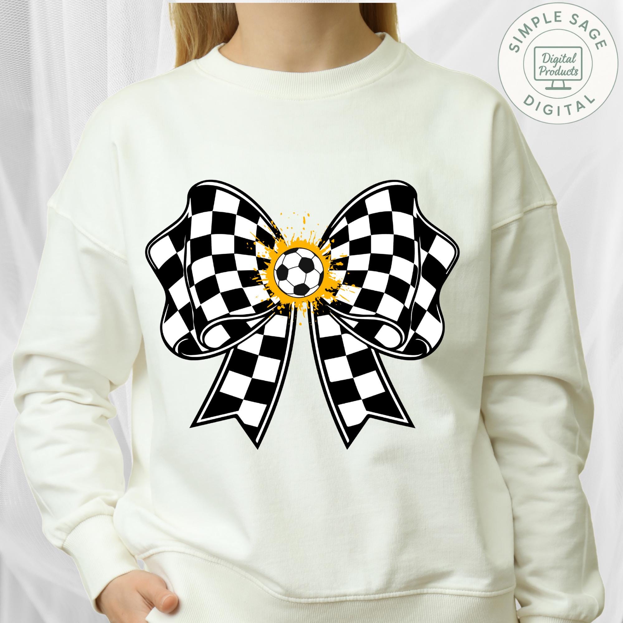 Retro Soccer Clipart Bundle: Coquette Bow, Checkered Patterns (PNG, PDF Digital Download