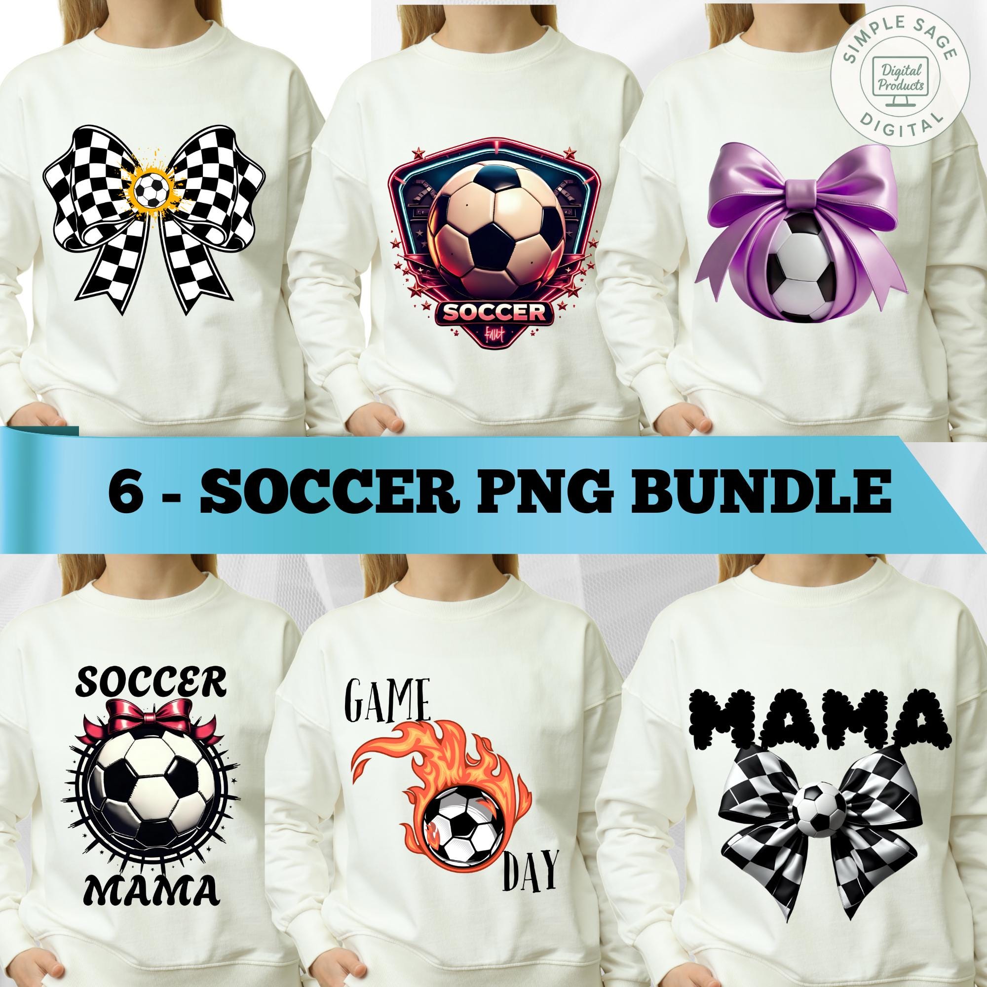 Soccer PNG bundle featuring retro-inspired soccer mama clipart, coquette bow soccer art, checkered soccer patterns, and game day designs. High-resolution PNG files with transparent backgrounds, perfect for sublimation, t-shirts, mugs, crafts, and digital projects.