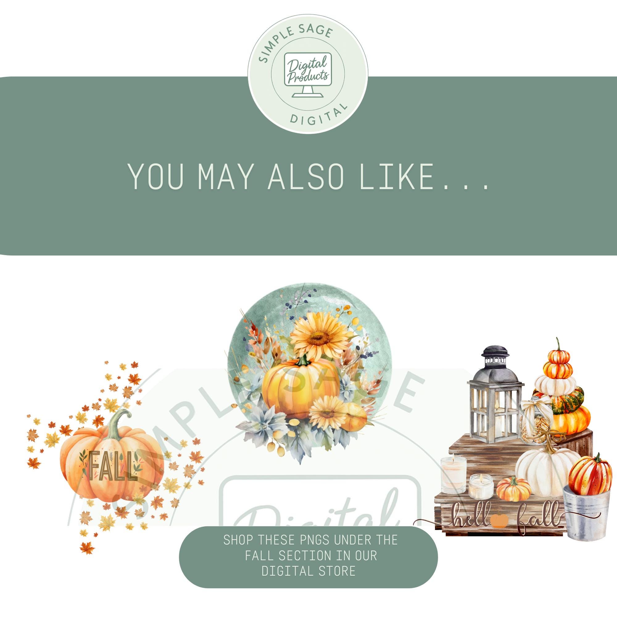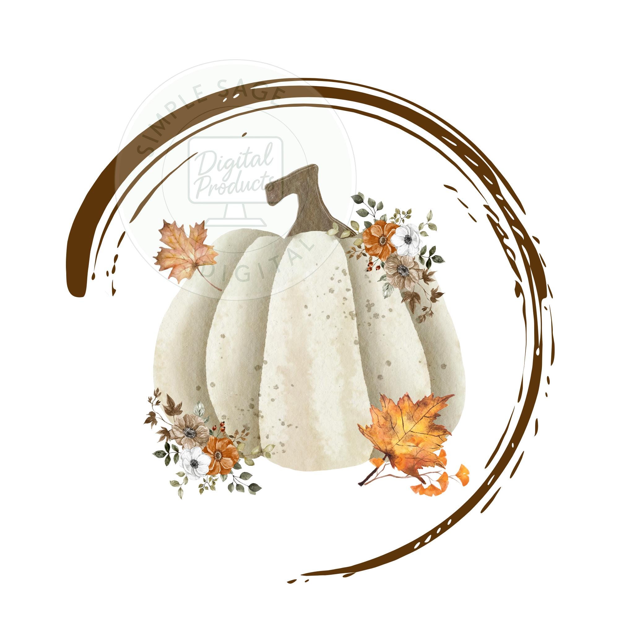 Floral Pumpkin PNG: Rustic Autumn Watercolor Design (Digital Download