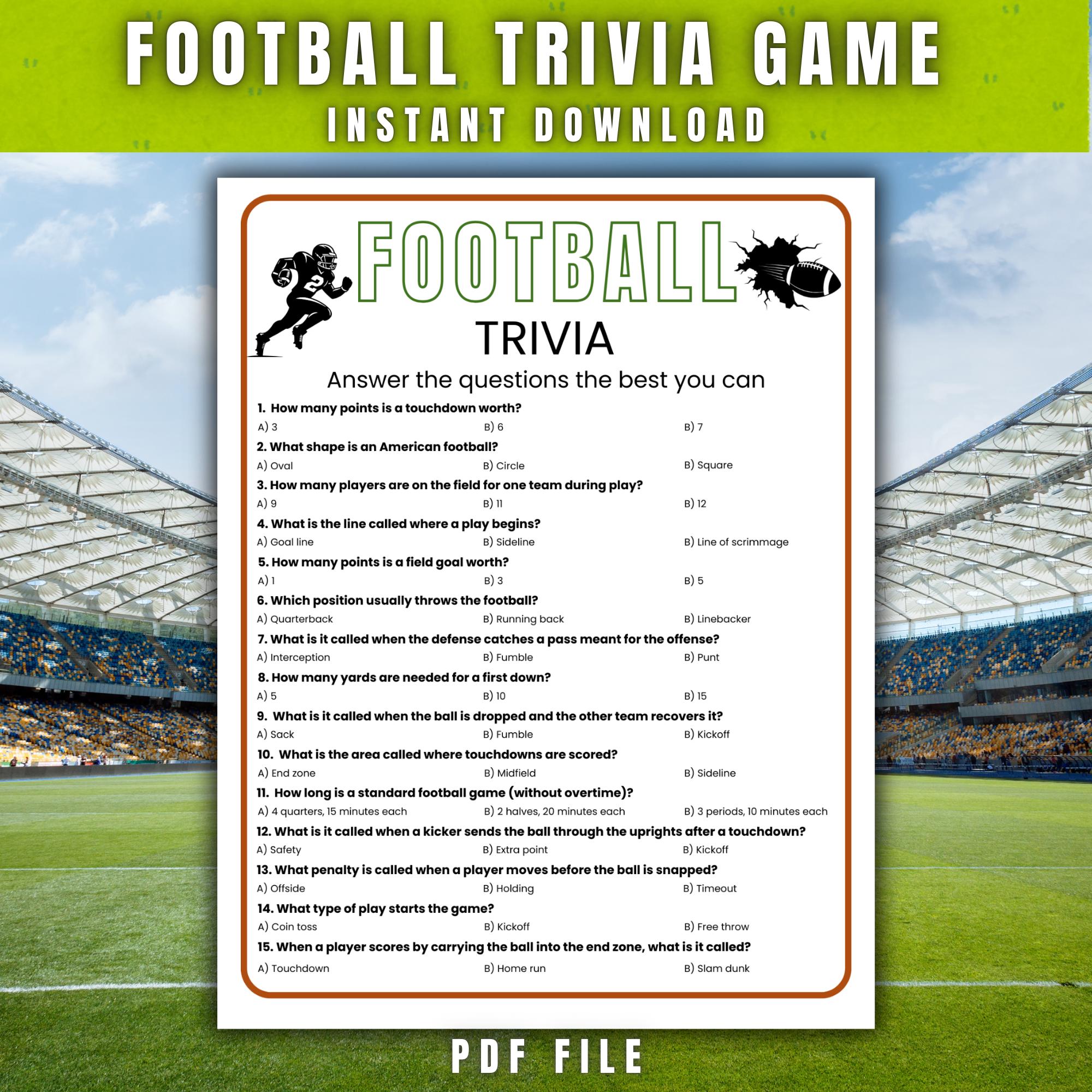 Football Trivia Game I Printable Quiz for Kids, Teens, Adults (PDF Download