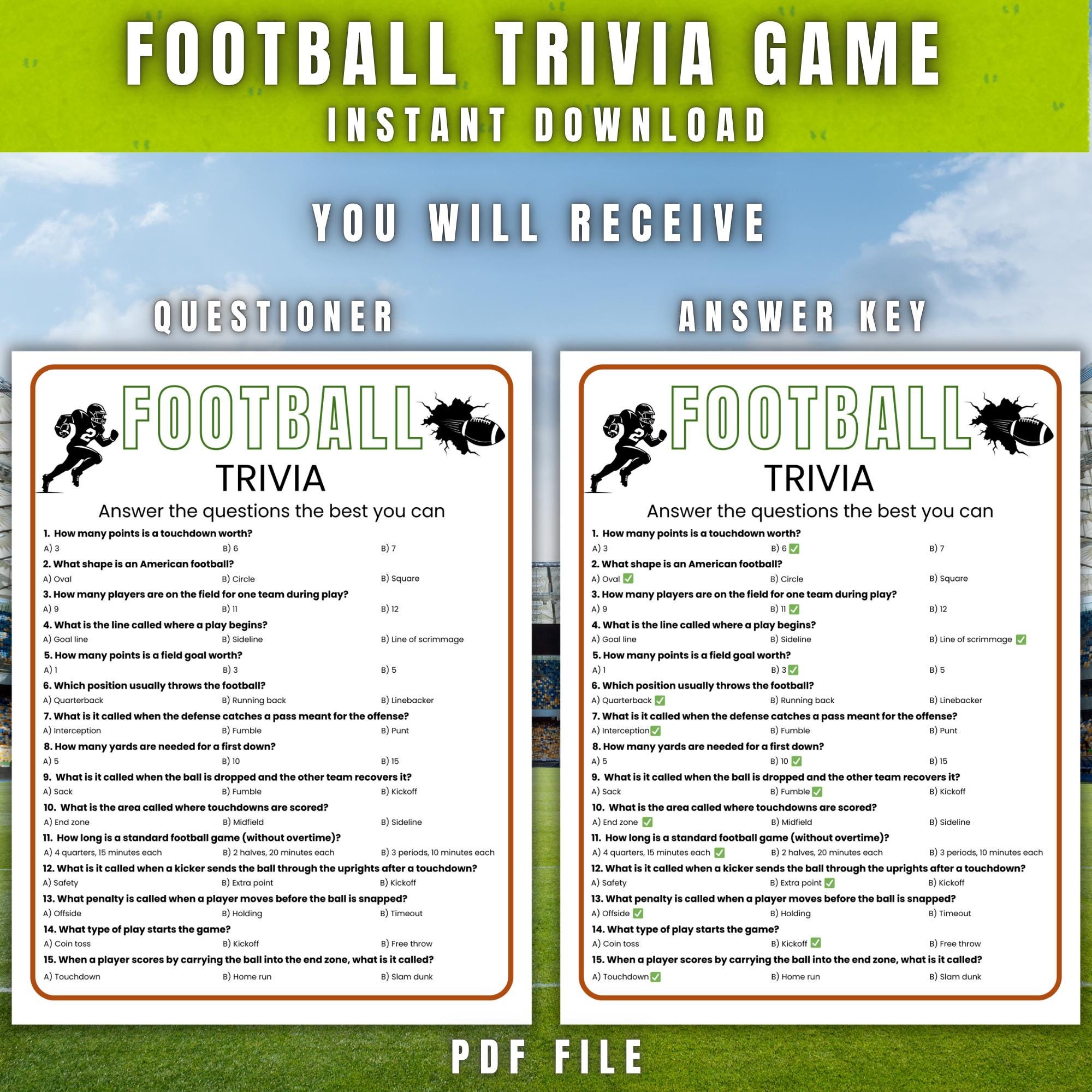 1 PDF file with 15 football trivia questions & multiple-choice answers