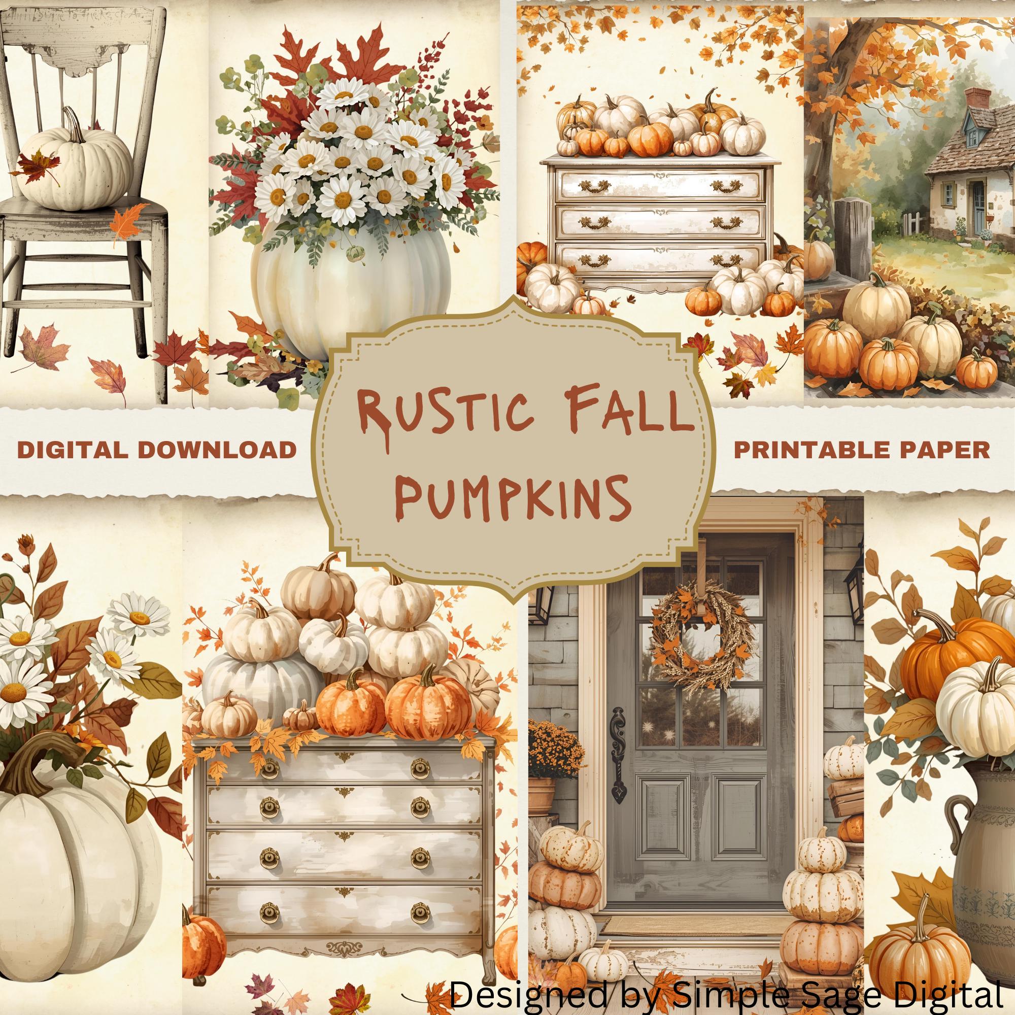Autumn Ephemera Kit – Rustic Fall Pumpkins, Junk Journal Printable Pages, Vintage Scrapbook Paper