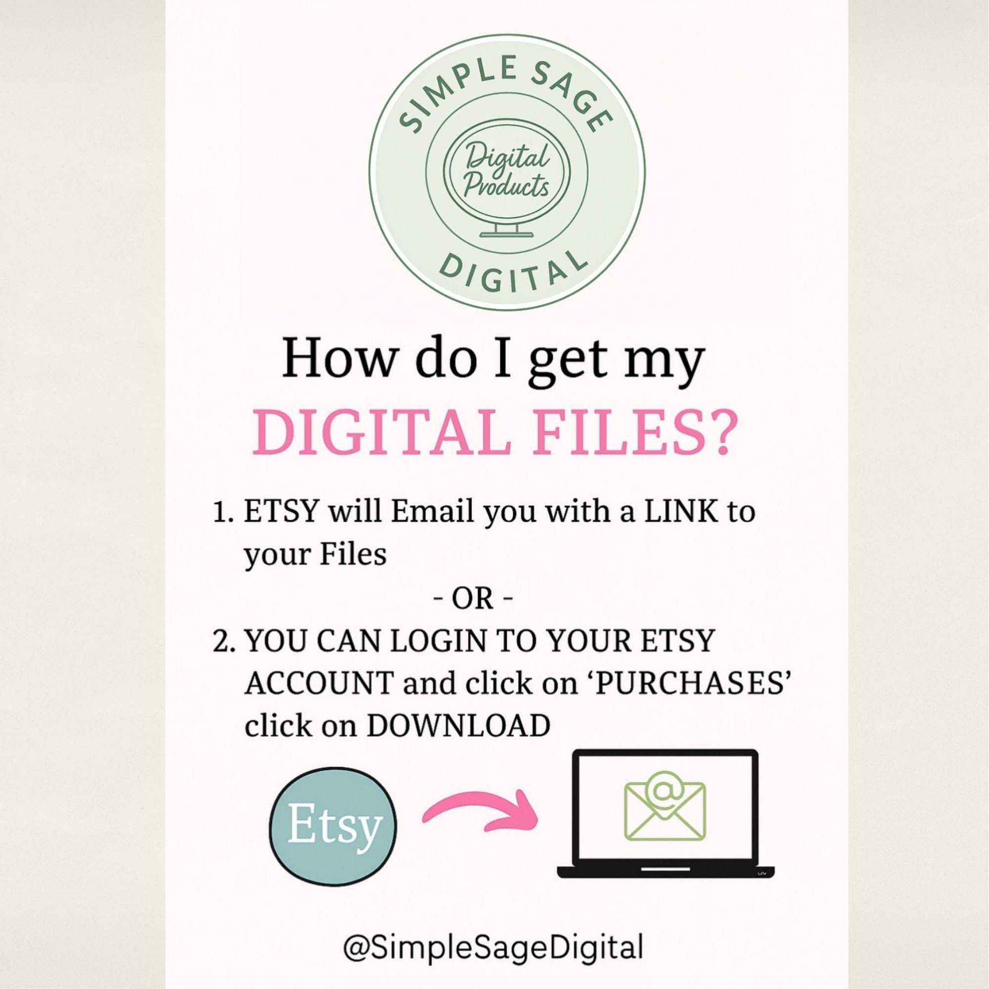 After purchasing, you can access your downloads by going to your Etsy profile > Purchases & Reviews. If you made a purchase as a guest, you will receive an email from Etsy with download links.