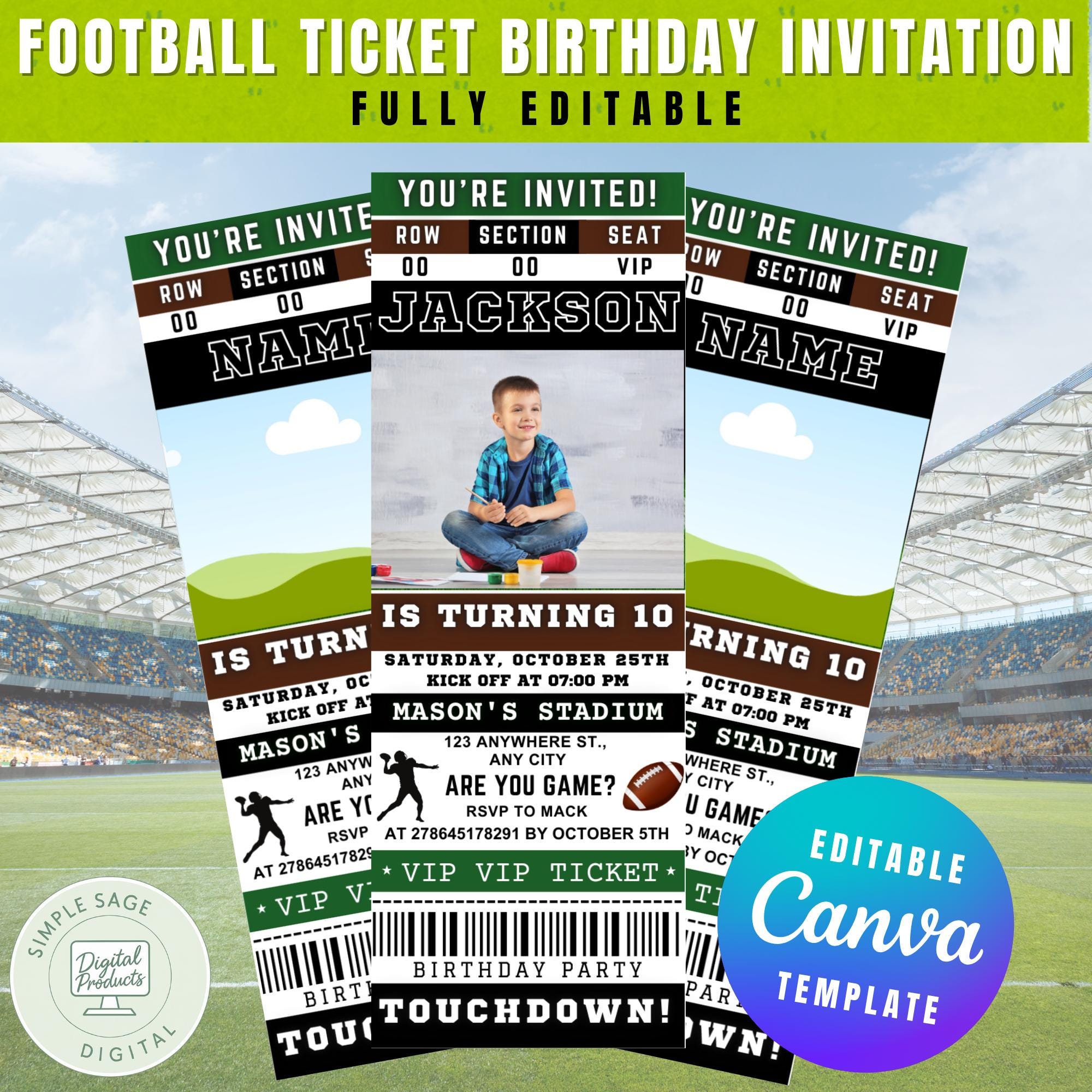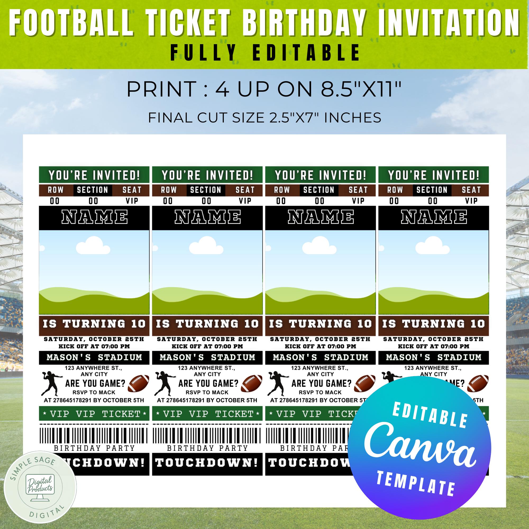 Football Ticket Birthday Invitation: Editable Sports Party Invite (Printable Invite)