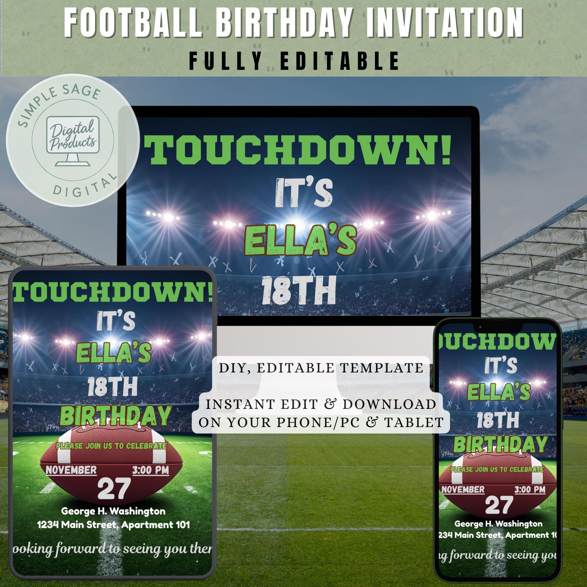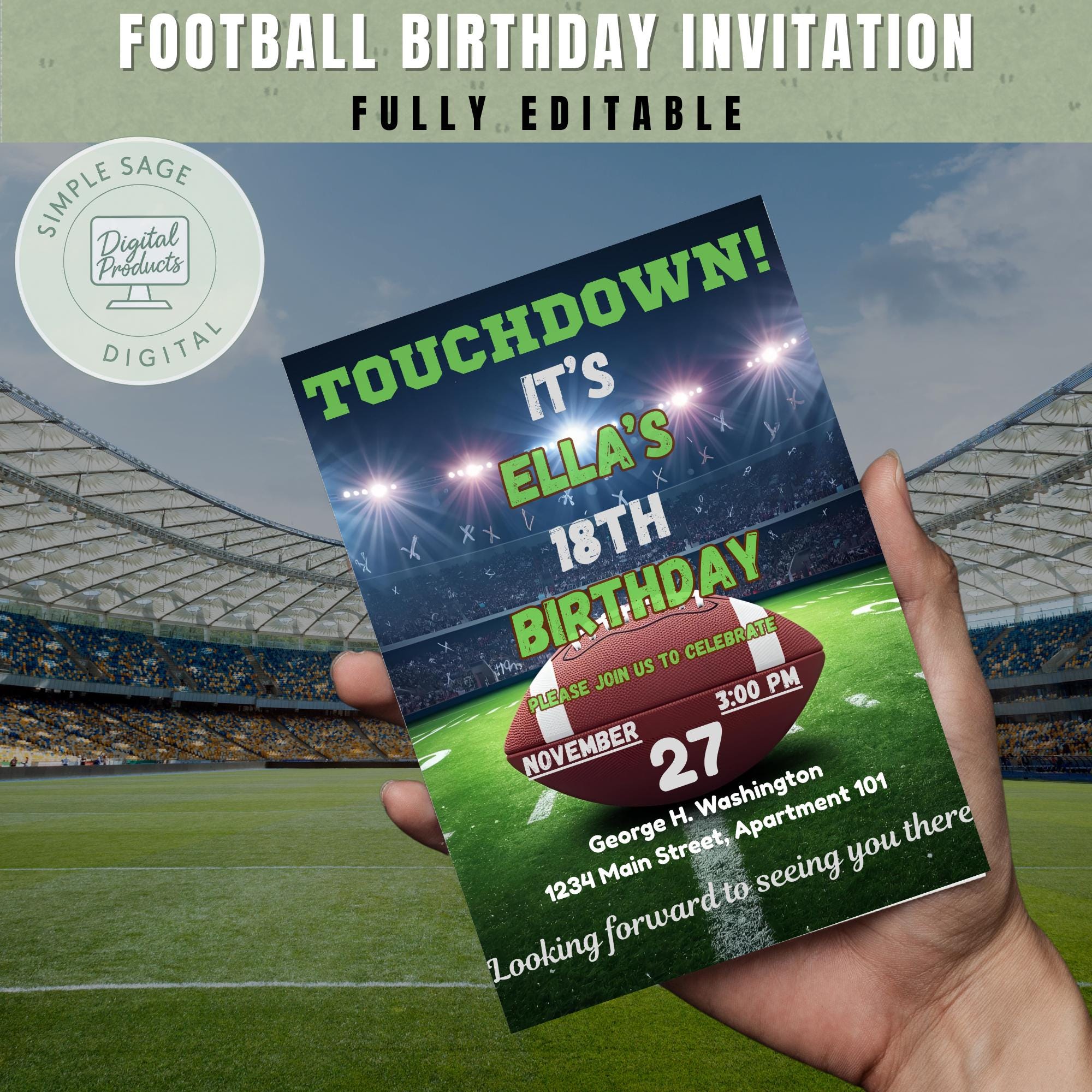 Touchdown! Make your child’s birthday extra special with this fun football birthday invitation. Designed with a glowing stadium background and football field theme, this editable template is perfect for sports fans of all ages. Whether you’re planning a game day celebration or a sporty backyard party, this invitation sets the tone for an unforgettable event!