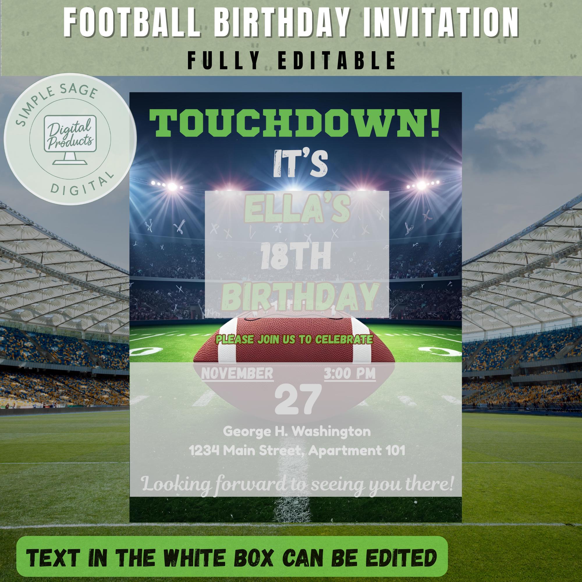Football Birthday Party Invitation | Chalk Playbook Sports Design | Digital Template