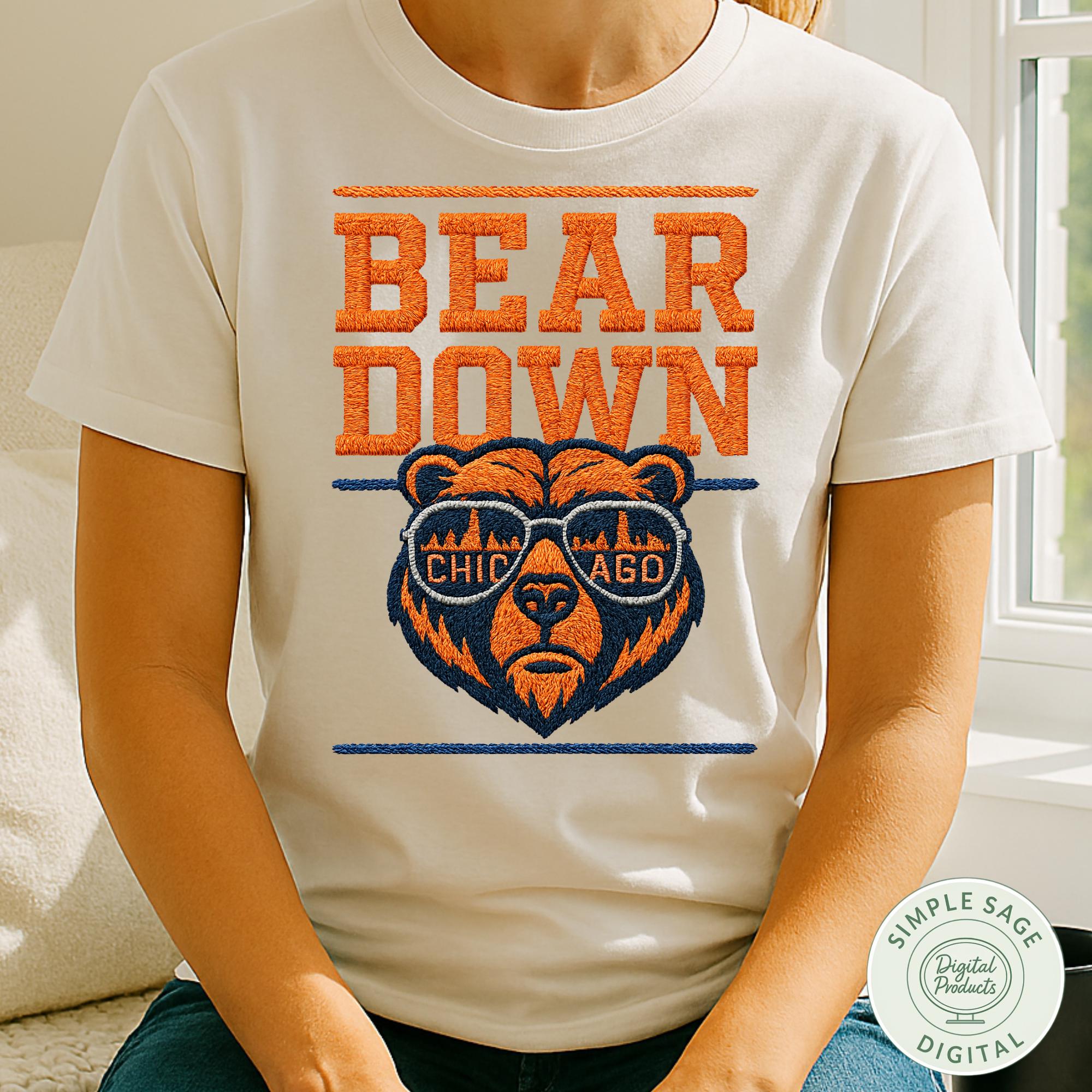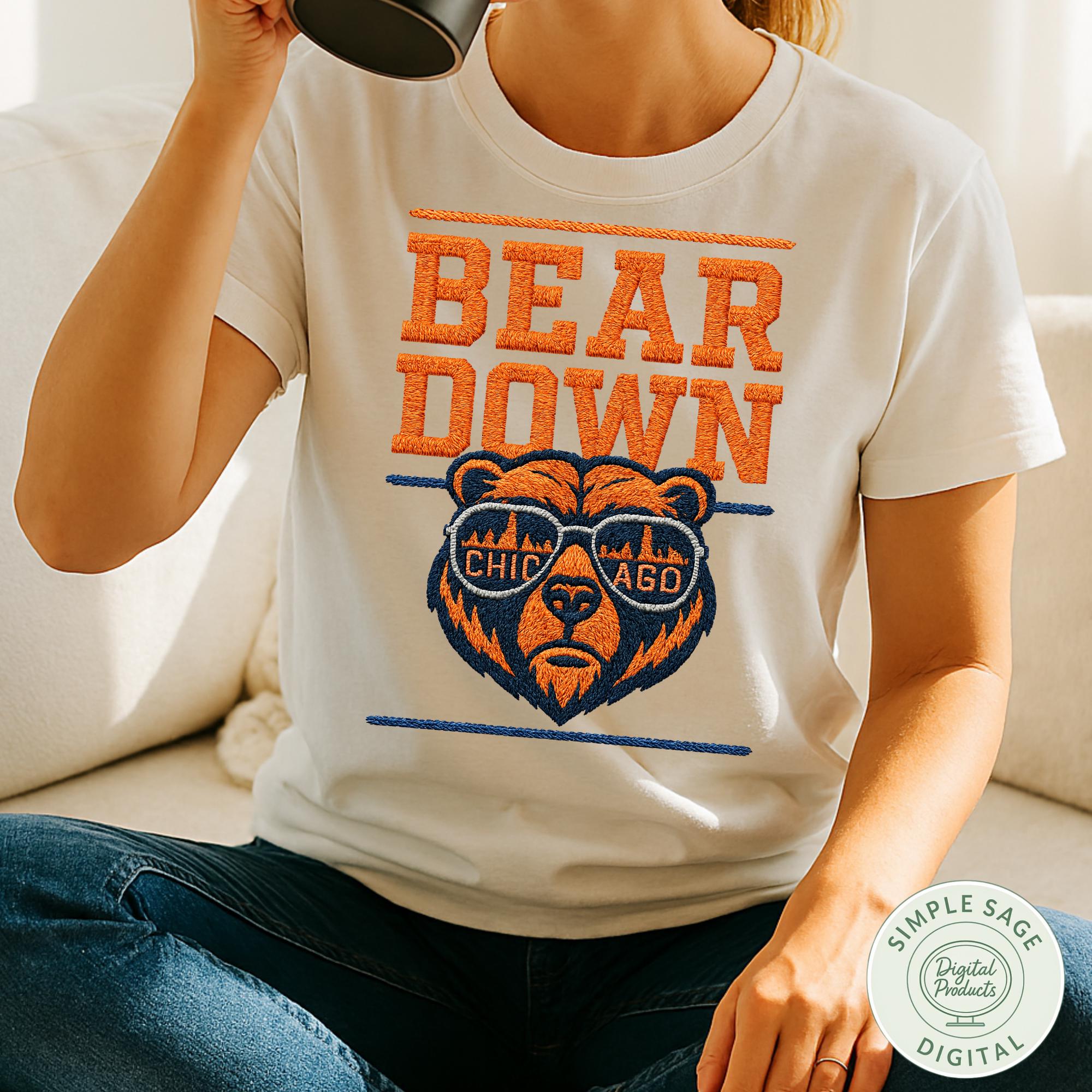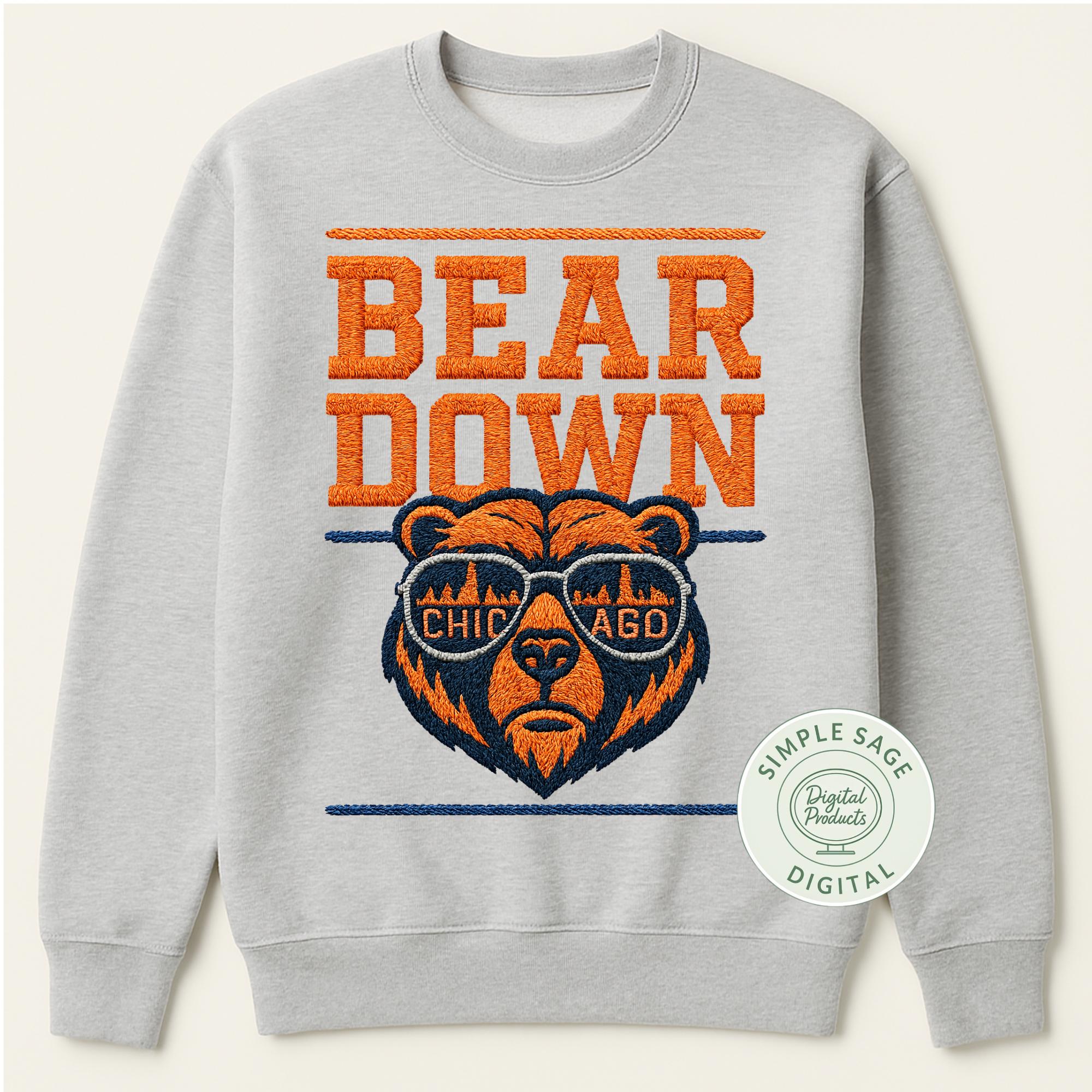 Bears Football SVG, Vintage Chicago Football PNG, Retro Chicago Game Day svg,Bears Embroidery Style,Chicago Bears Sunglasses Digital Design
