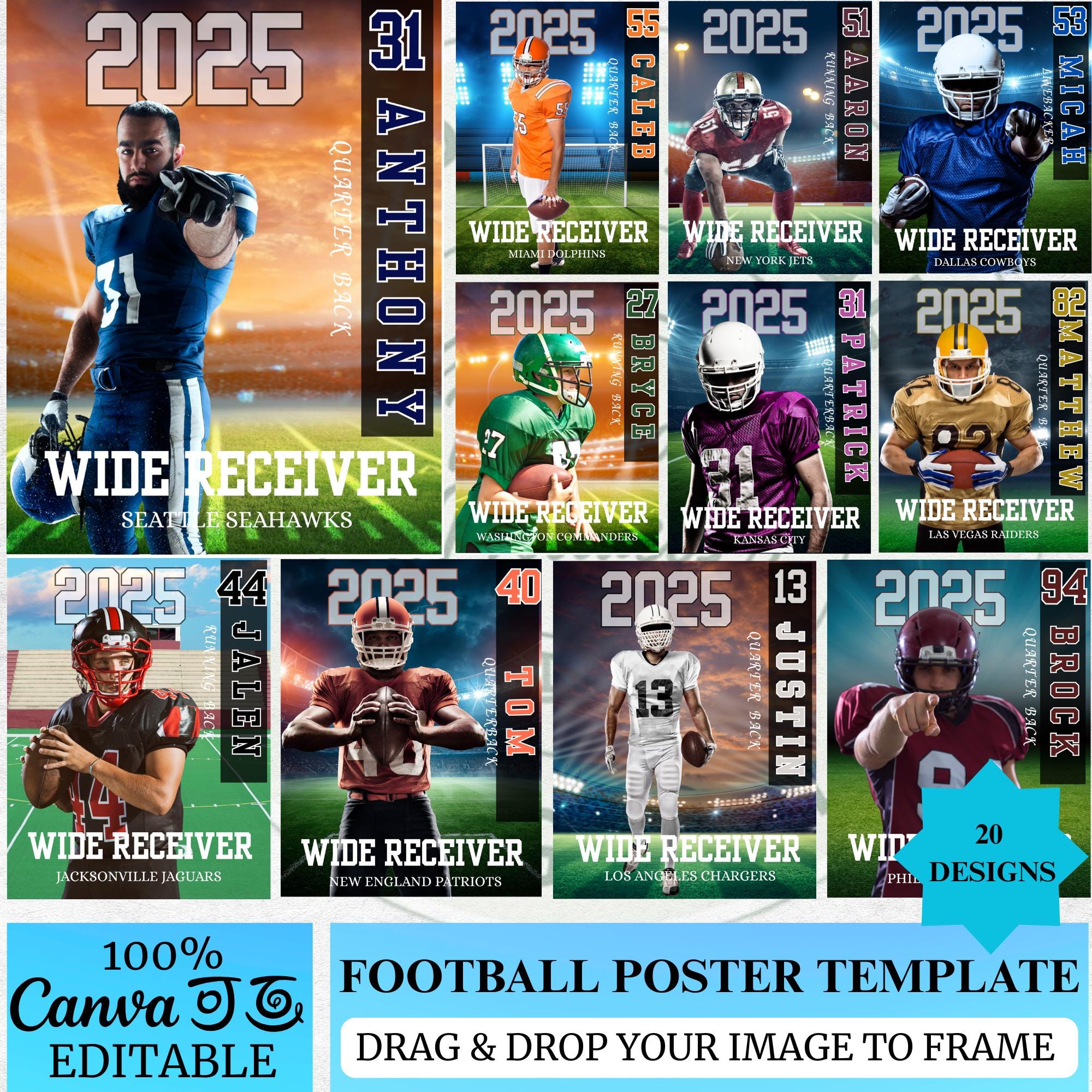 20 Editable Football Poster Canva Template | Senior Night Banners & Sports Backdrop Designs
