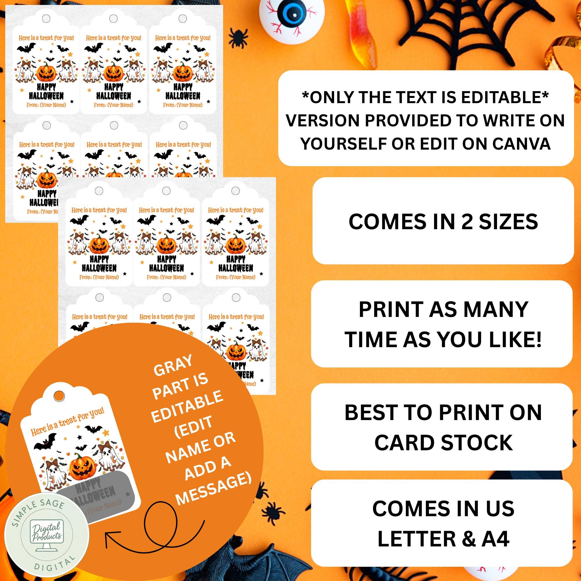 Editable Halloween Gift Tags: Trick or Treat Party Favors (Digital Download)