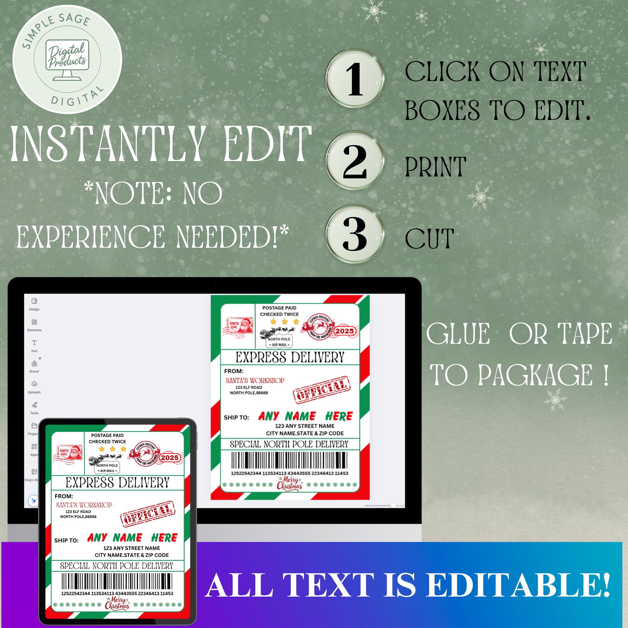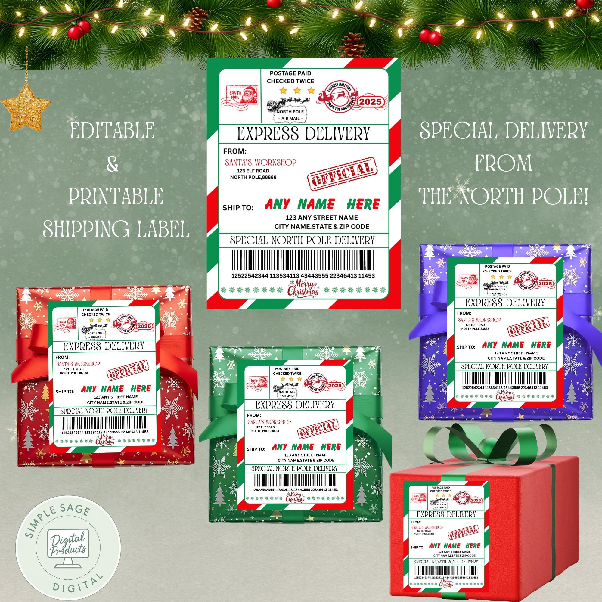 Editable Santa Shipping Label Template, North Pole Christmas Gift (Digital Download)