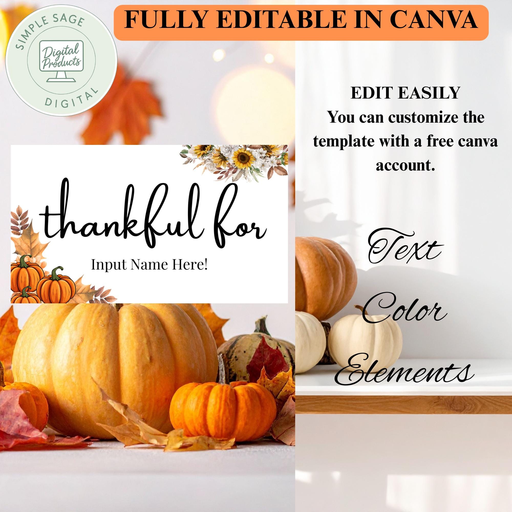 Thanksgiving Place Card Template | Editable Fall Table Card (Digital Download)