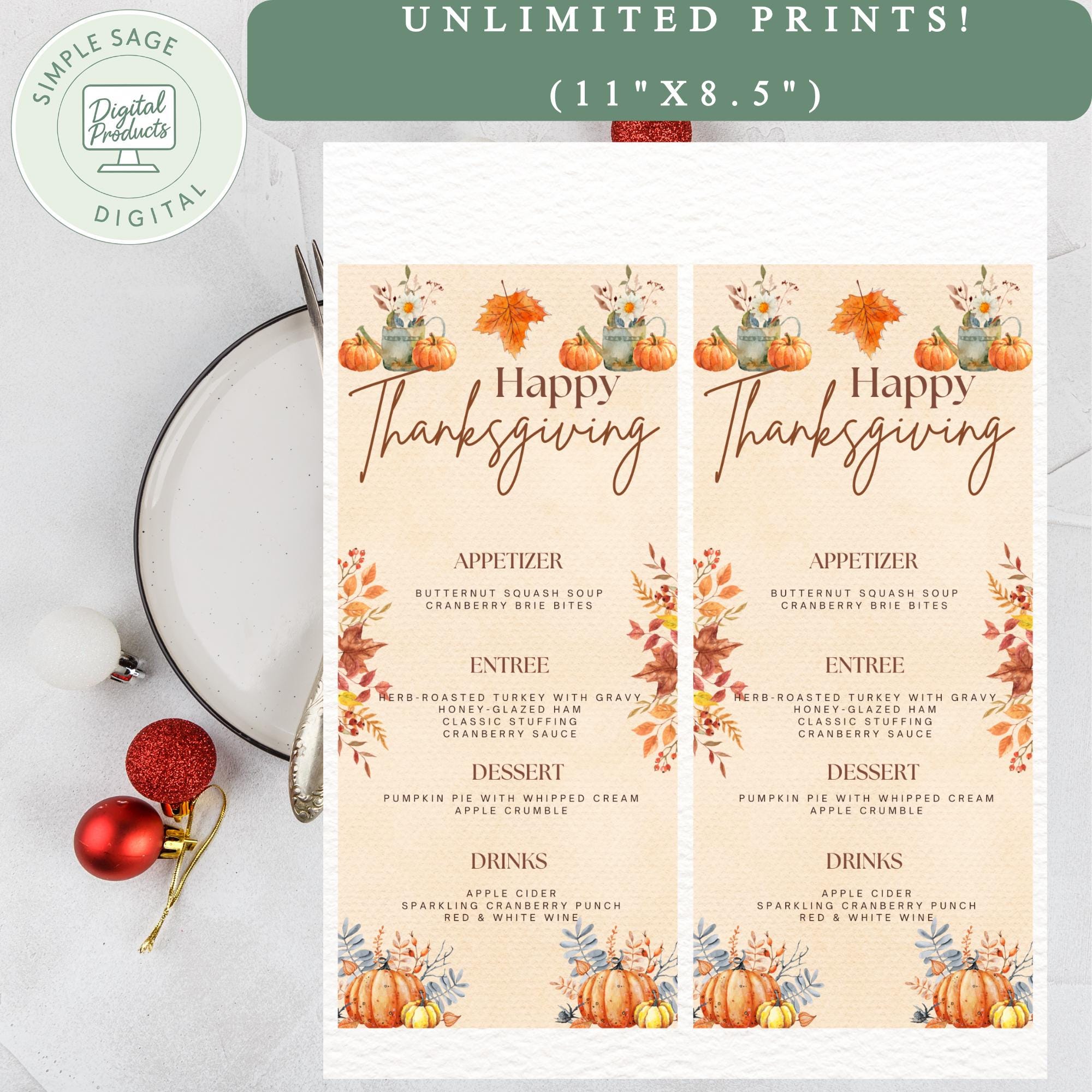 Thanksgiving Dinner Menu Template, Fall Pumpkin Floral (Canva Editable)