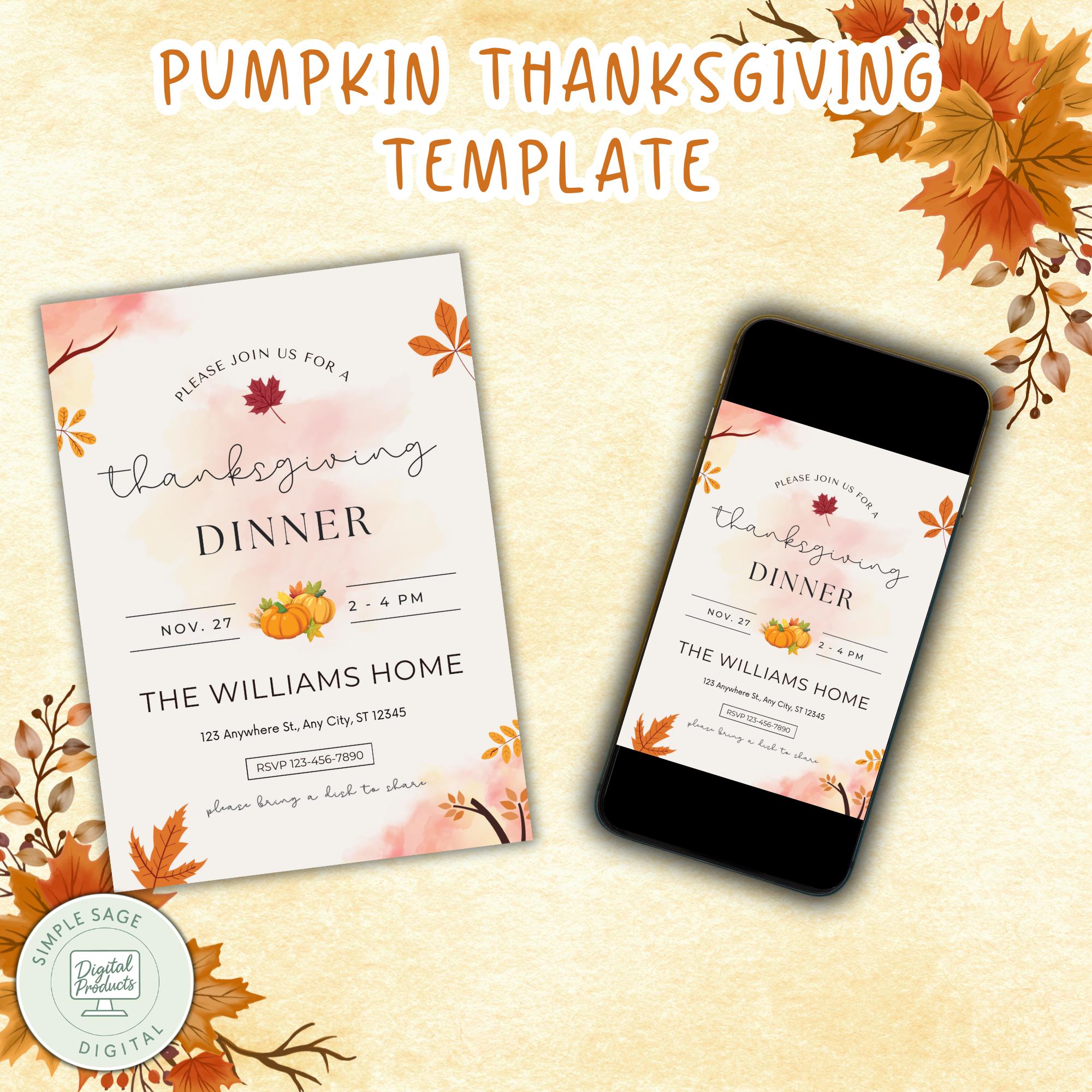 Minimalist Thanksgiving Invitation Template, Editable Pumpkin Dinner Invite, Modern Canva Template