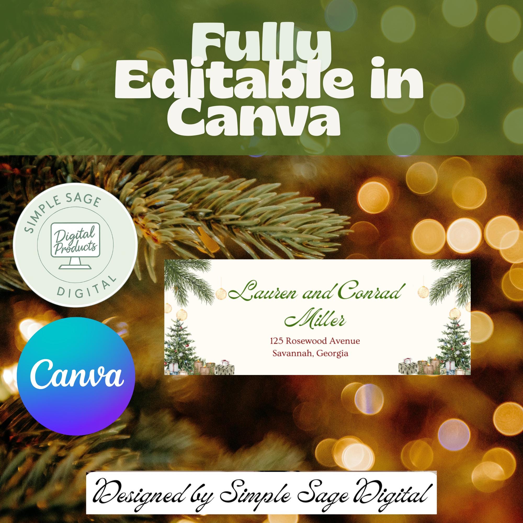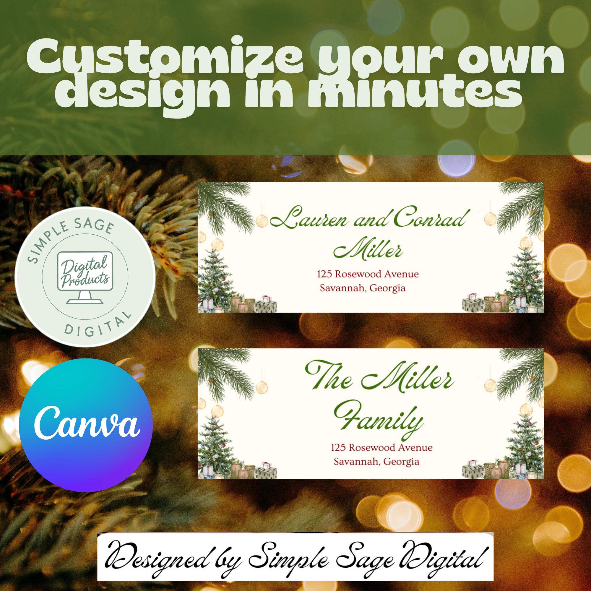 Editable Christmas Address Labels, Holiday Return Address (Digital Download)