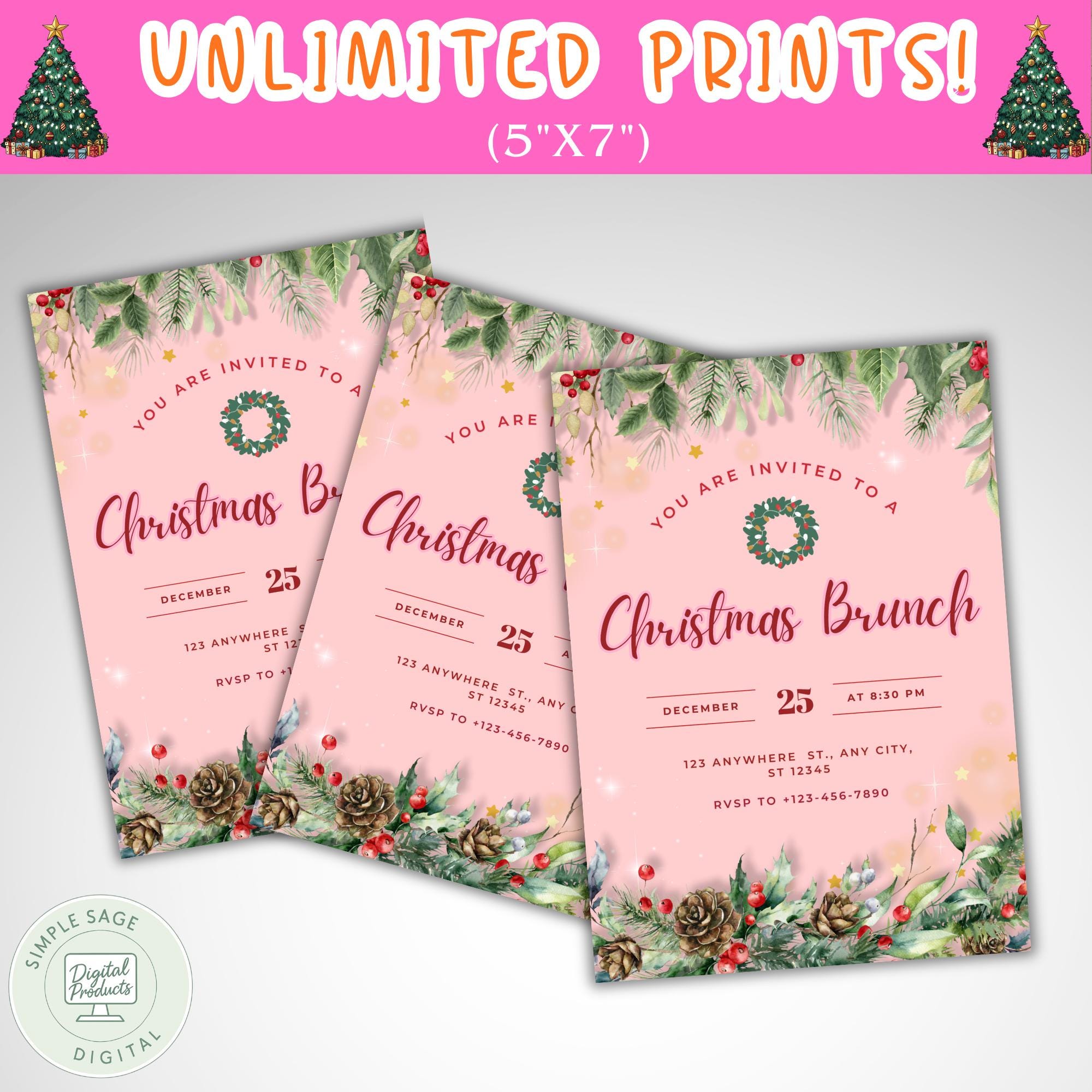 🎄 Trendy Pink Christmas Brunch Invitation Template 🥂