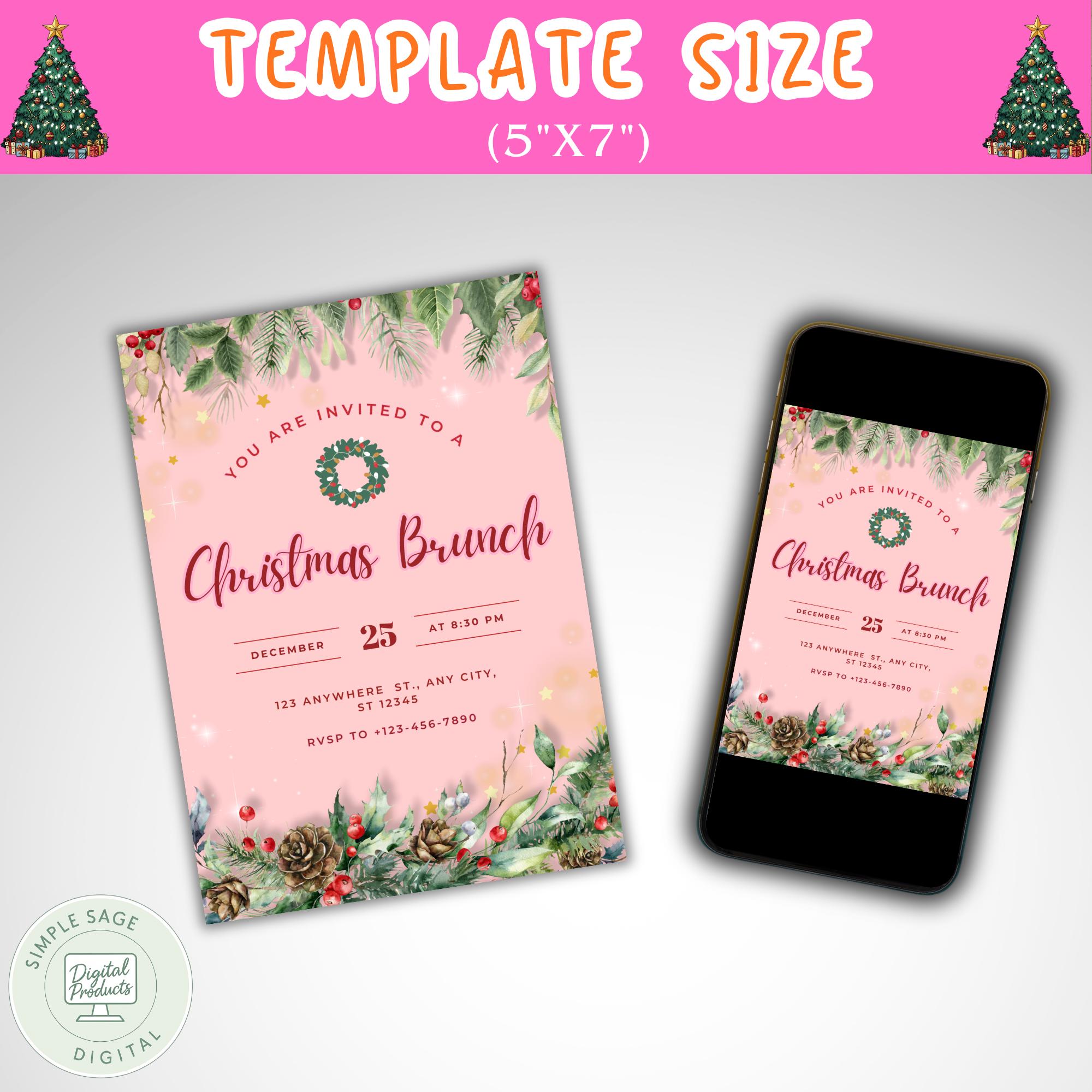 This template is fully editable in Canva and perfect for your Christmas Day brunch, holiday cocktail party, or any December event.