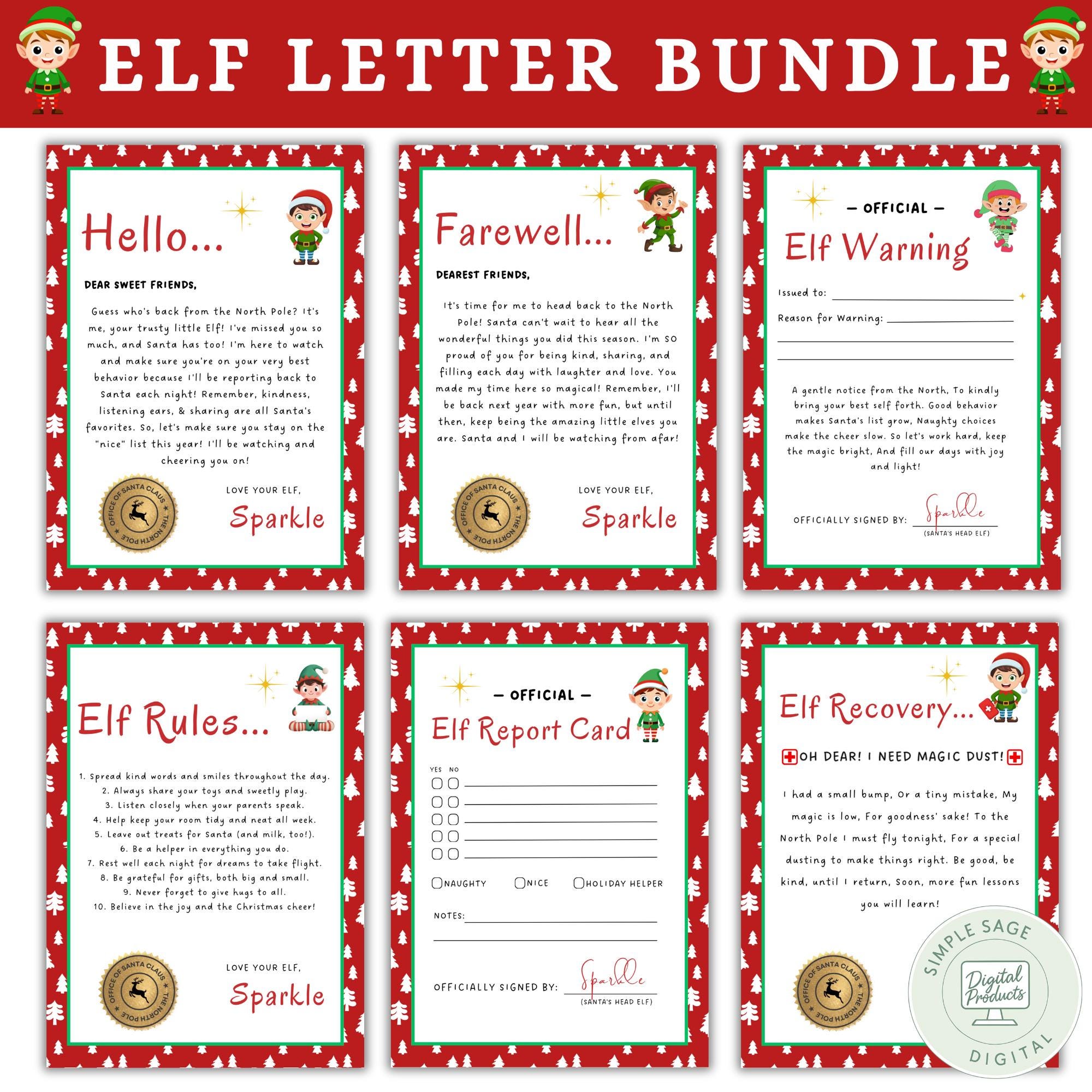 Elf Letter Bundle | Christmas Bundle: Arrival, Warning, Report Card & Rules Cards | 5x7 Printable Kit