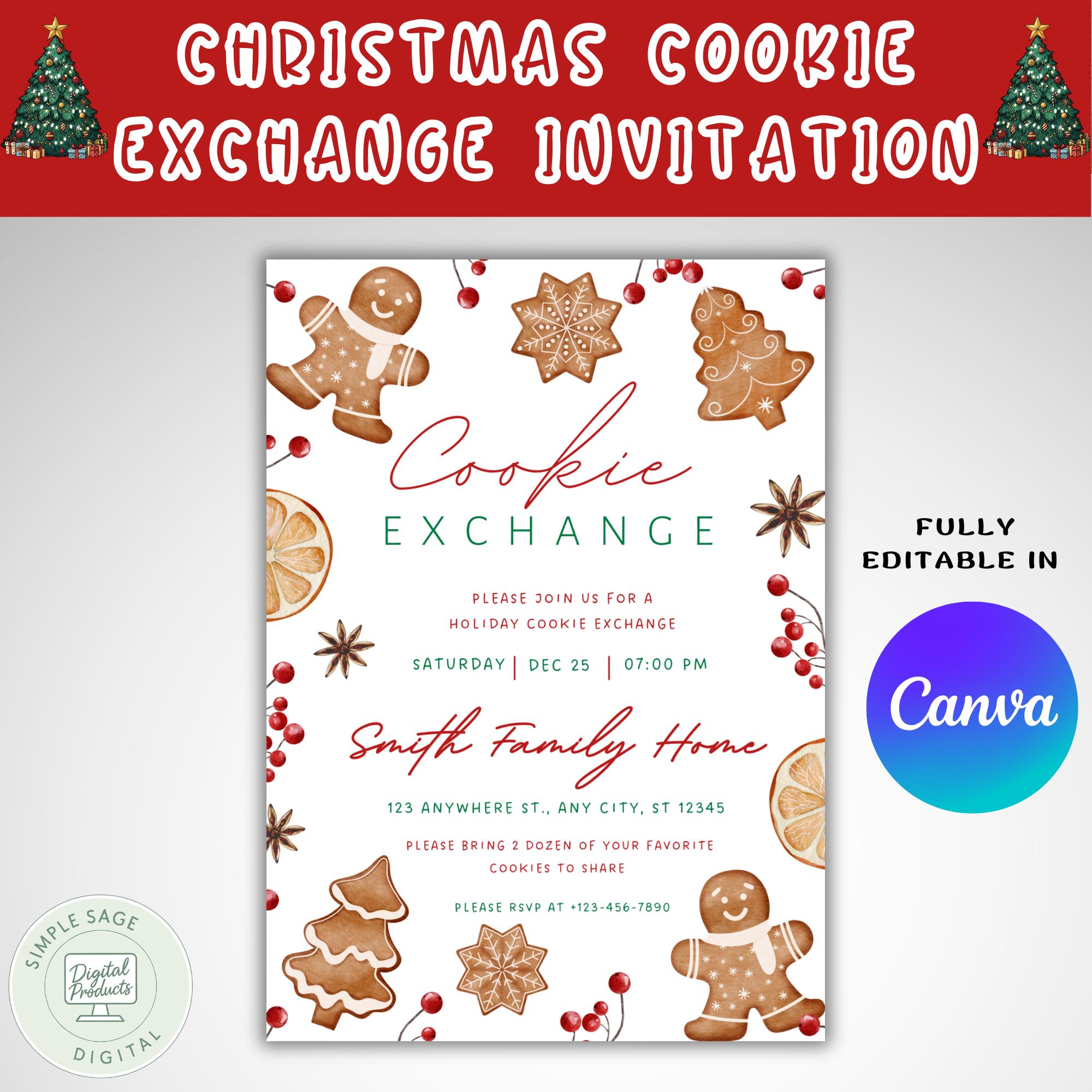 Gingerbread Christmas Cookie Exchange Invitation | Holiday Party (Digital Download)