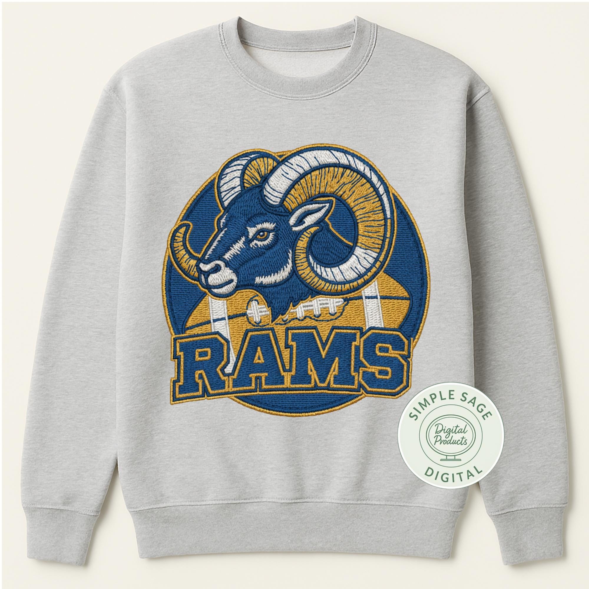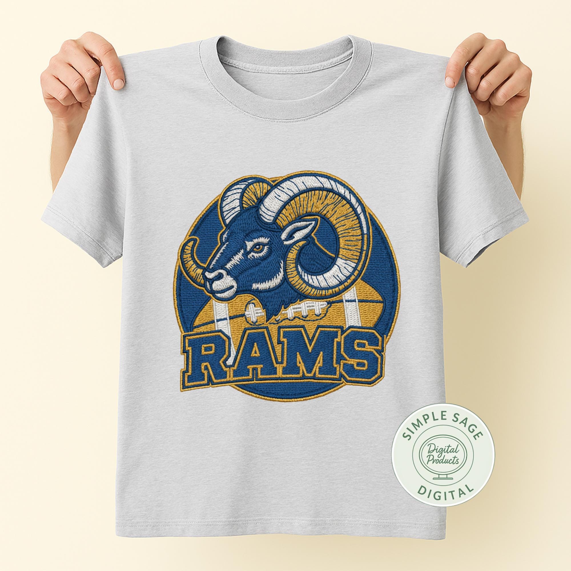 Rams Football Fan Art: Yellow & Blue SVG, PNG (Digital Download) embroidery style