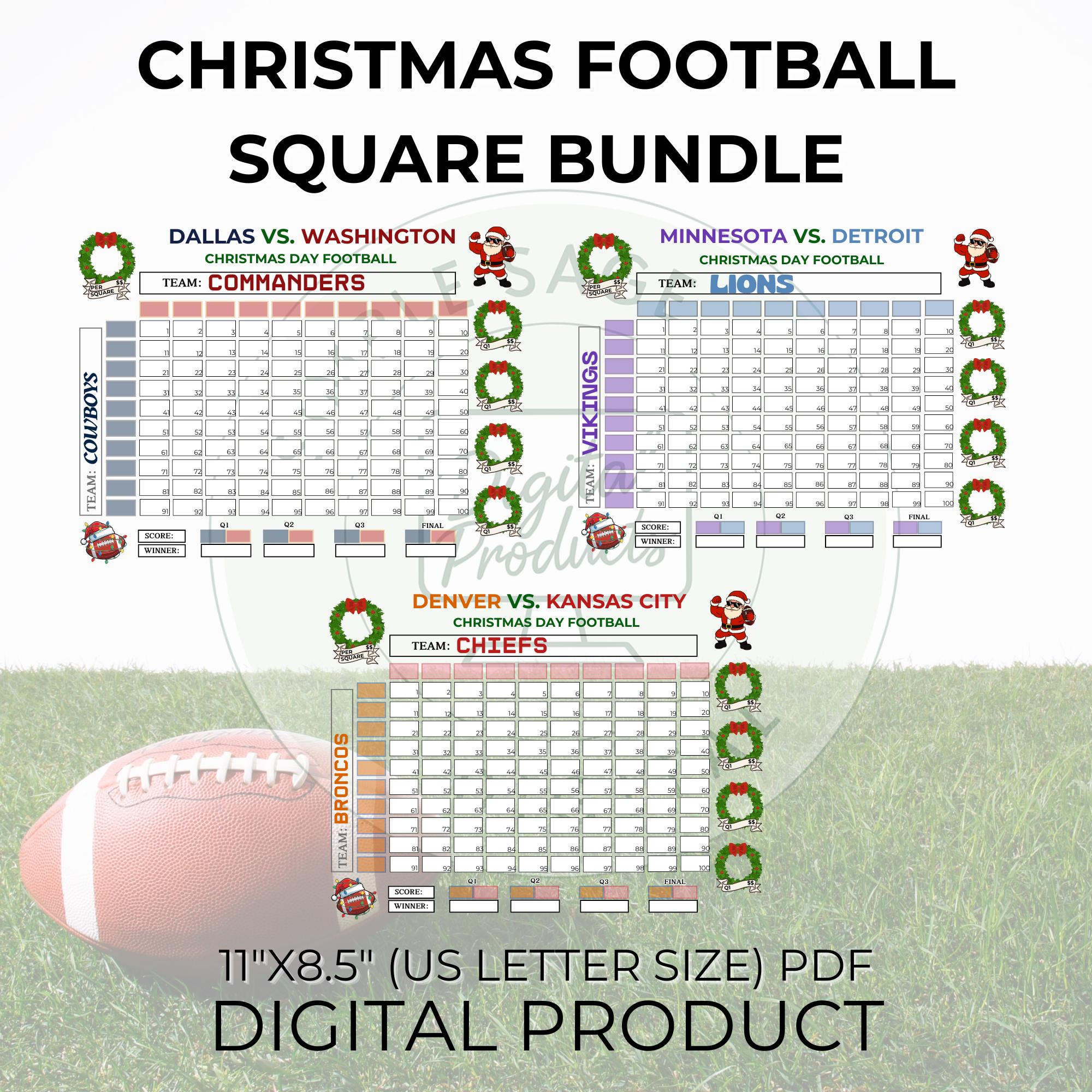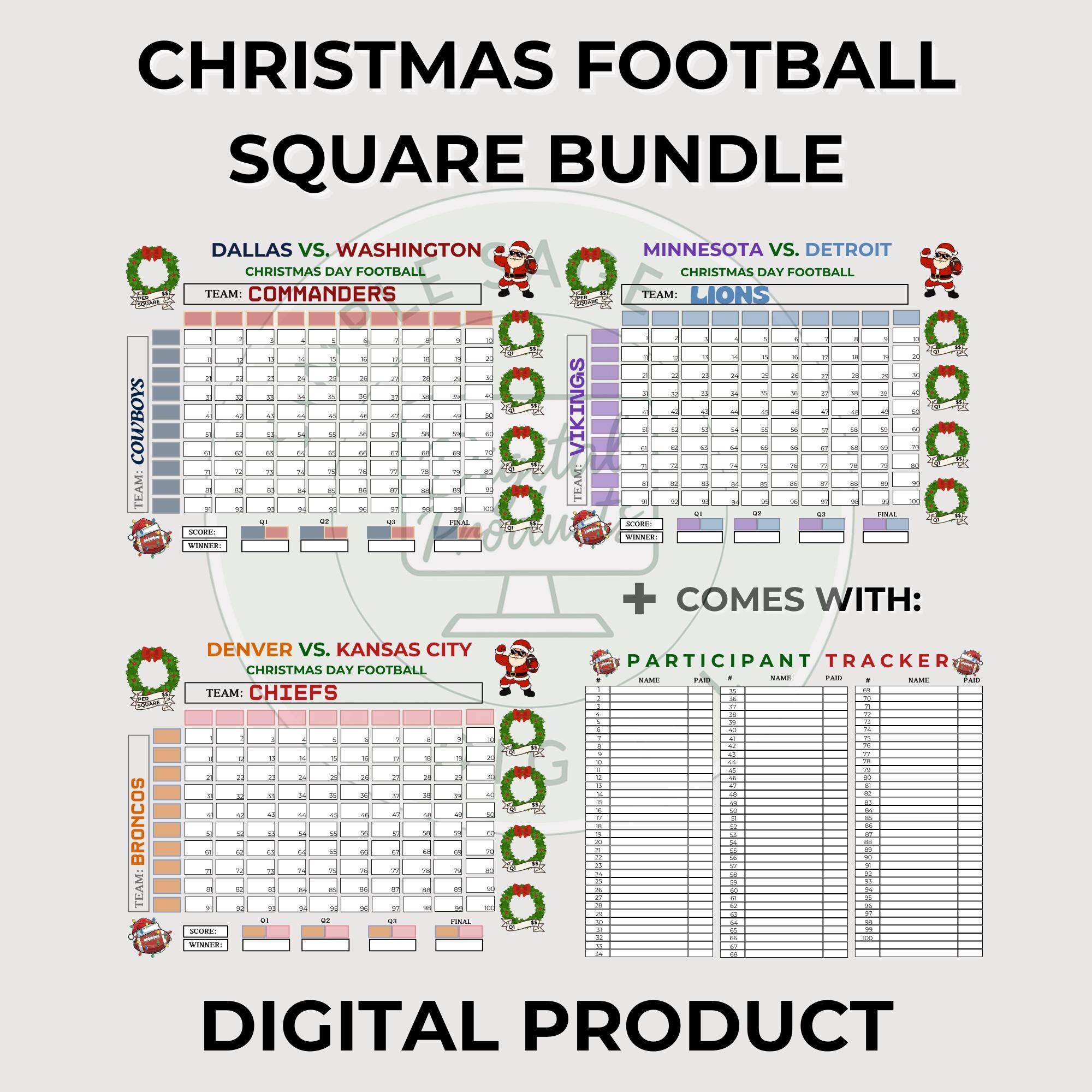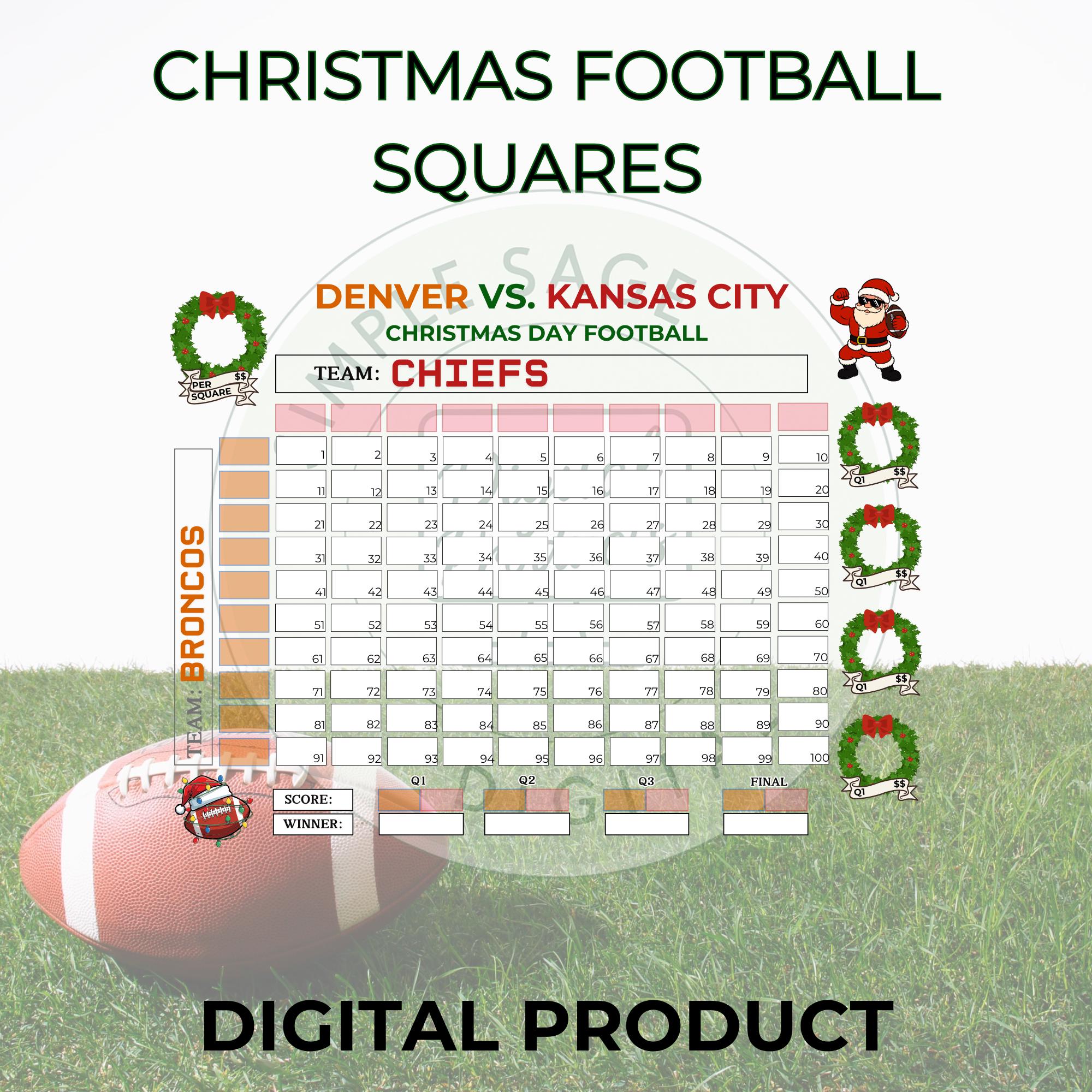 Christmas Football Squares, 100 Square Grid, Tracker (PDF Download)