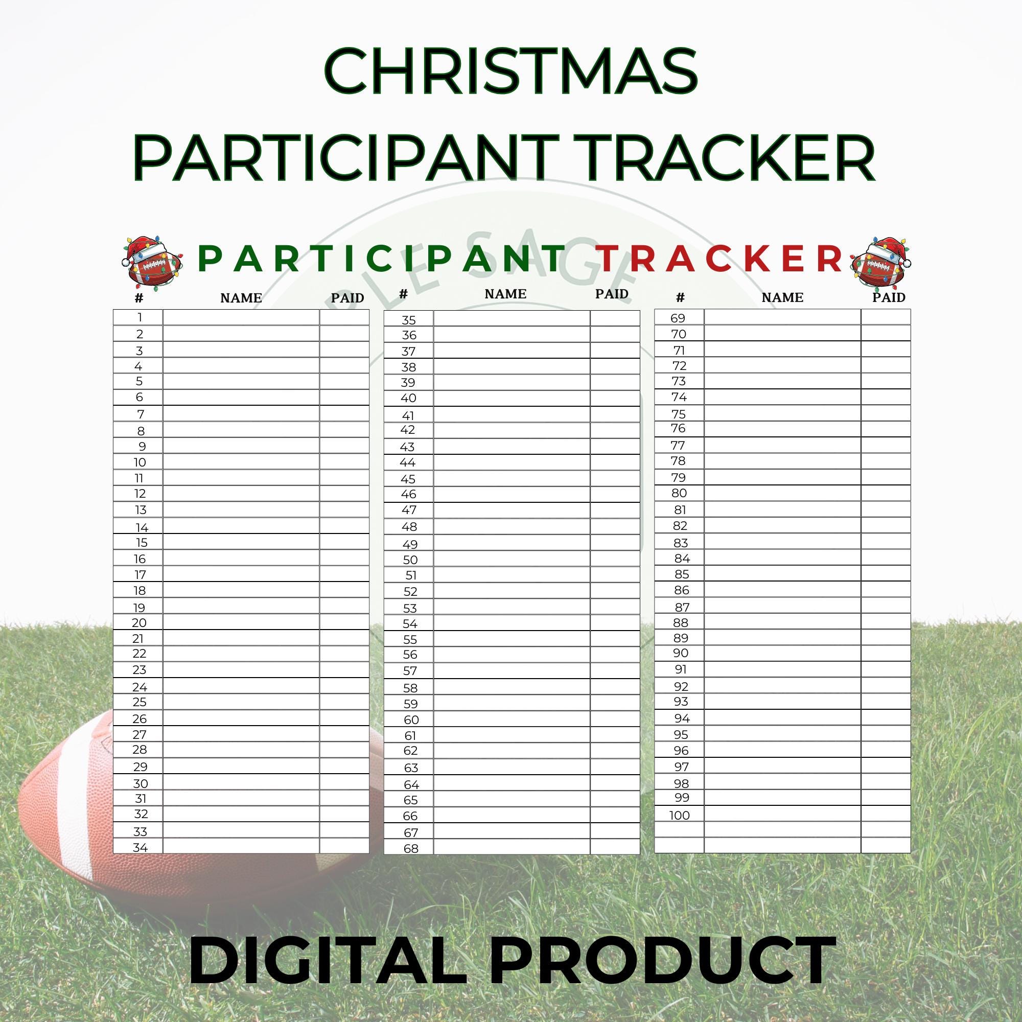 🏈 Christmas Football Squares Printable – 100 Square Grid + Participant Tracker for Fundraiser, Betting Pool, and Game Day Fun – Instant Download