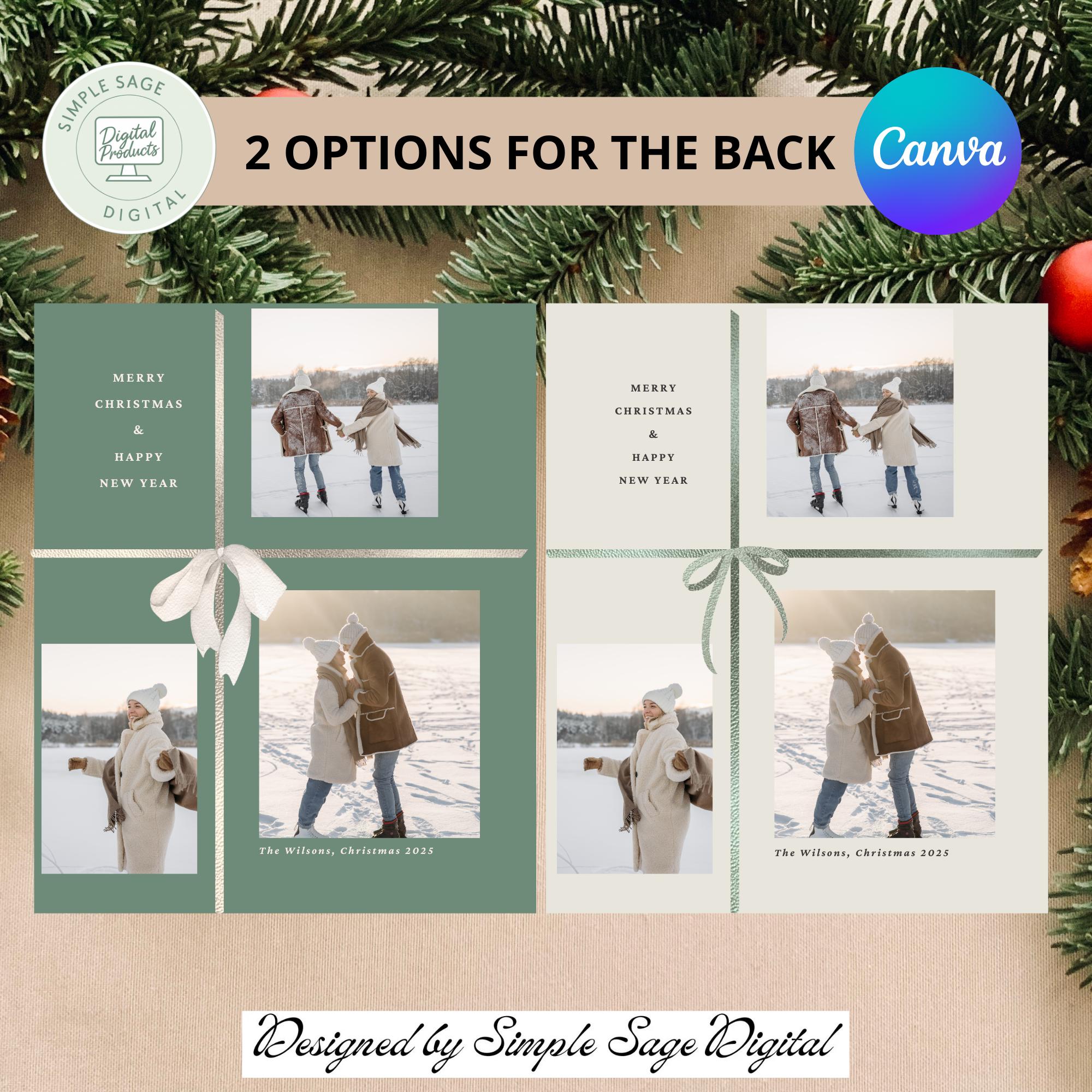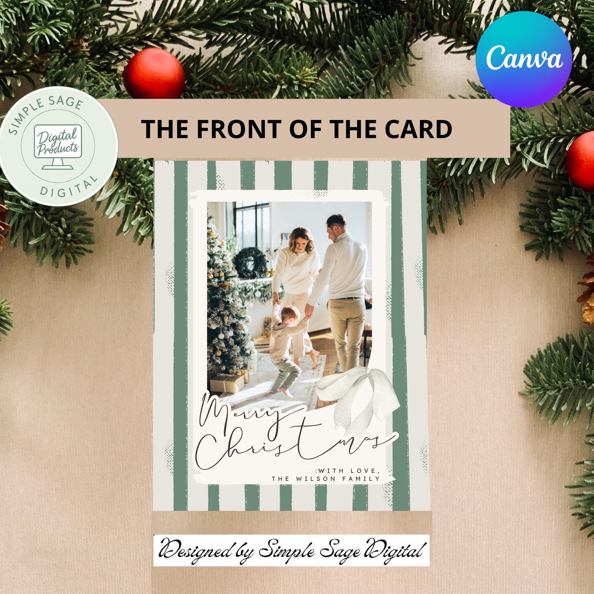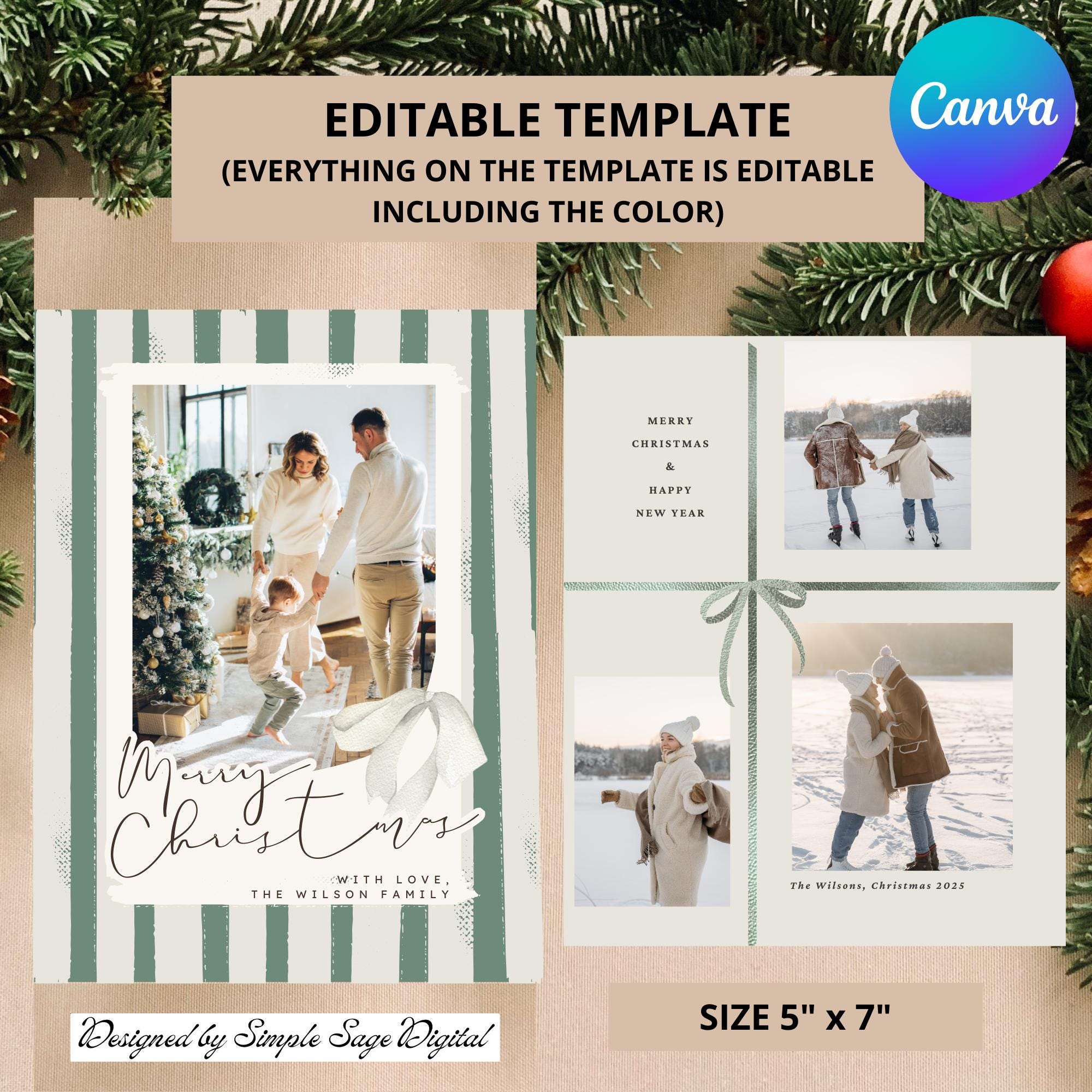 Editable Bow Stripe Christmas Photo Card Template, Year In Review (Digital Download)