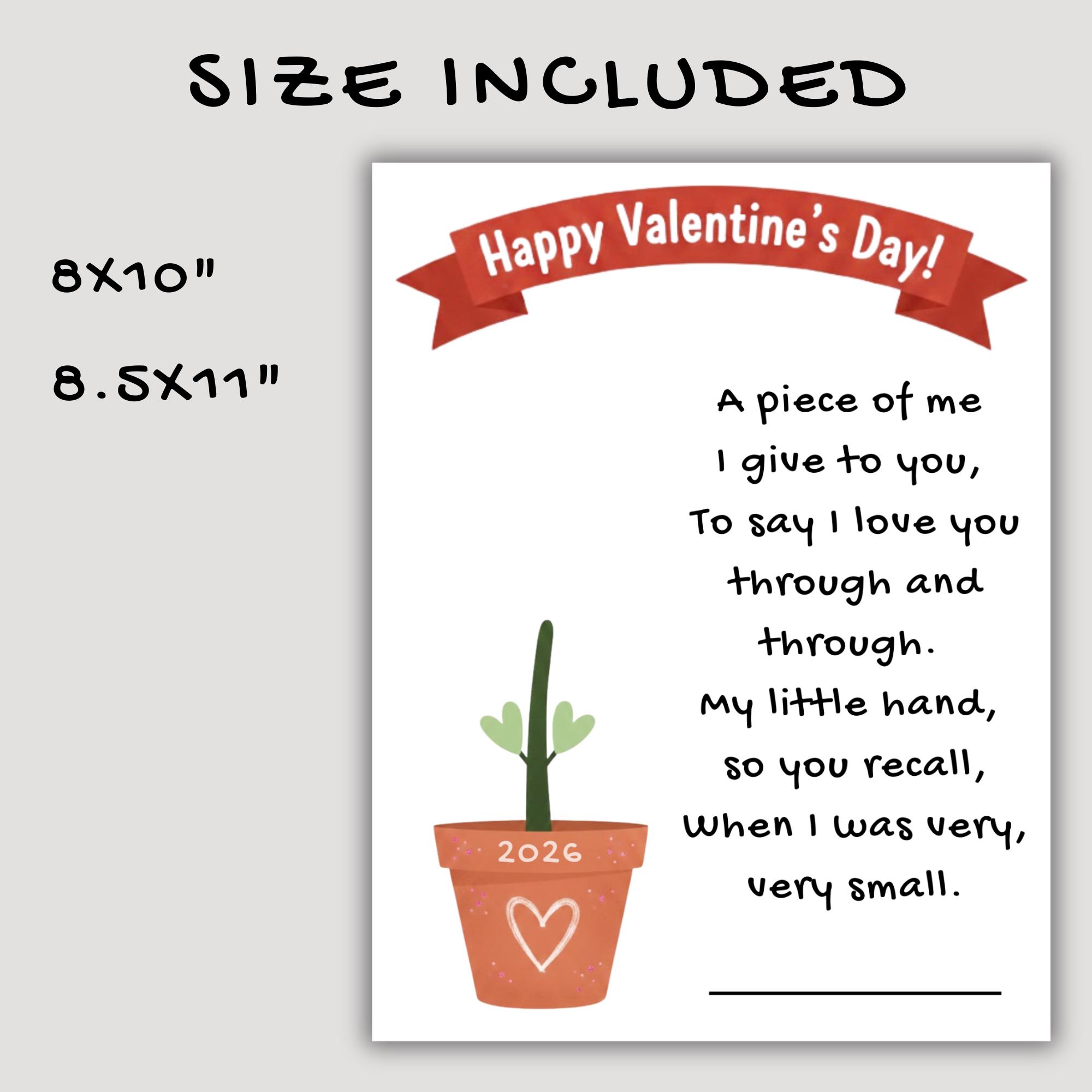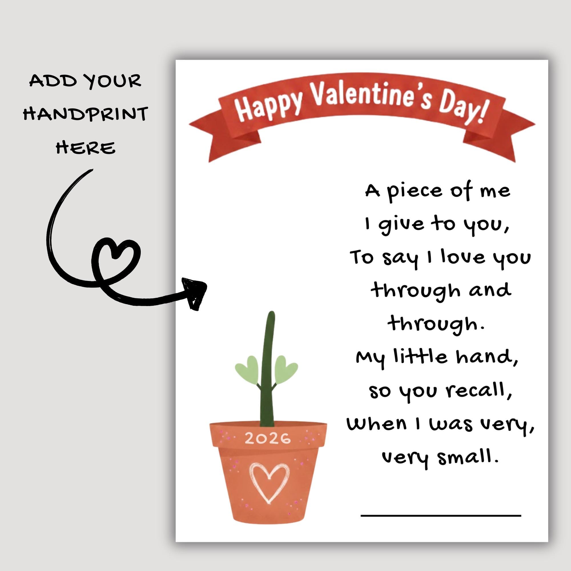 Valentine Handprint Craft for Kids, Flower Poem Keepsake, Printable Valentine Activity, Instant Download